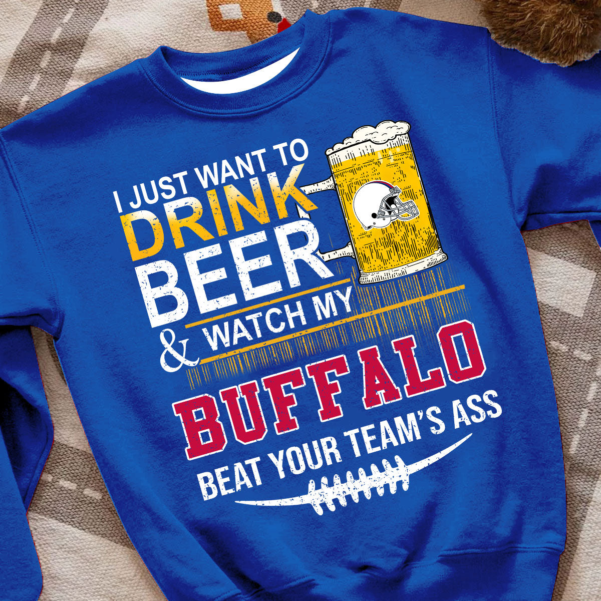Buffalo American Football Beer Hoodie Shirts, Just Want To Drink Beer & Watch My Buffalo American Football Beat Your Team Shirts