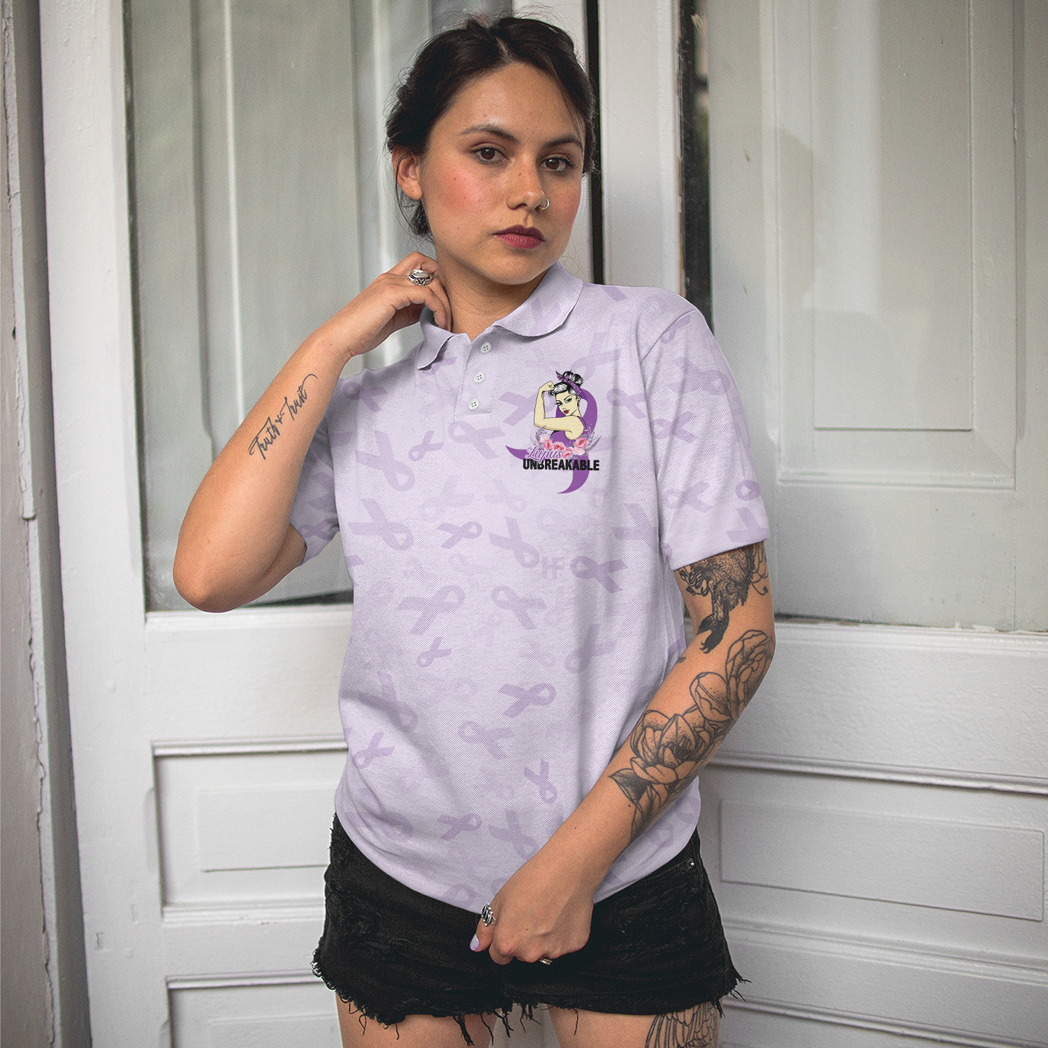 Butterfly Believe Lupus Awareness Polo Shirt, Lupus Month Awareness Ribbon Polo Shirt, Best Lupus Shirt For Women, Best Gift for Ladies