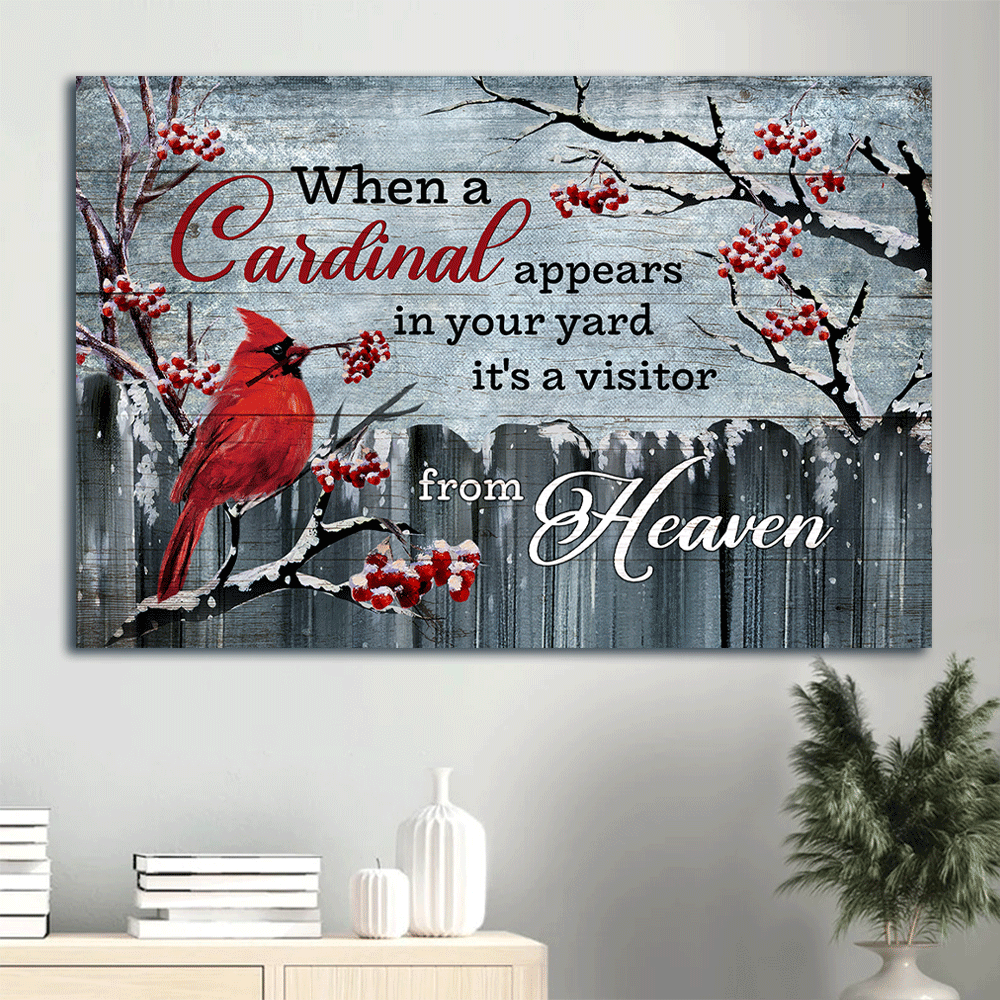 Perfect Wall Decoration: Memorial, Cardinal Landscape Canvas - Christmas Tree, Snow Day, When A Cardinal Appears In Your Yard It's A Visitor From Heaven is wall decor hang in office, living room, bedroom, this modern artwork design perfect matches any space and any home decor style.