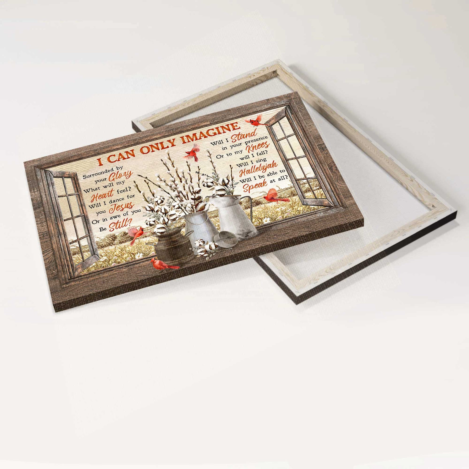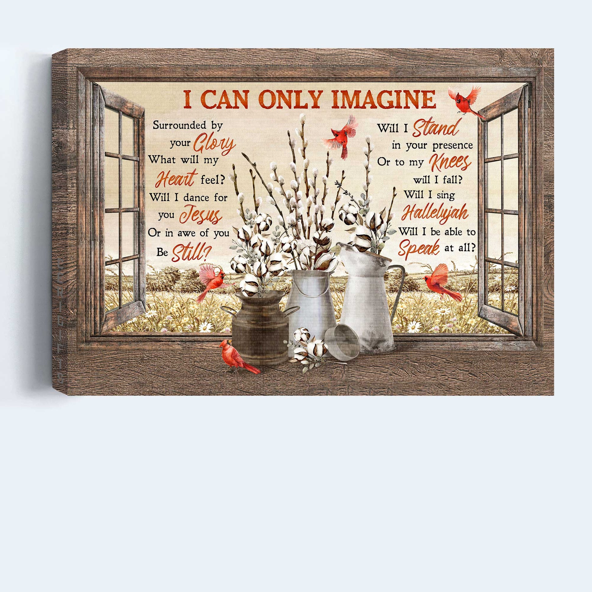 Red Cardinal Landscape Canvas, Christian Wall Decor Framed Art - Cardinal Painting, Cotton Flower, God, Faith, Jesus Canvas , I Can Only Imagine Canvas