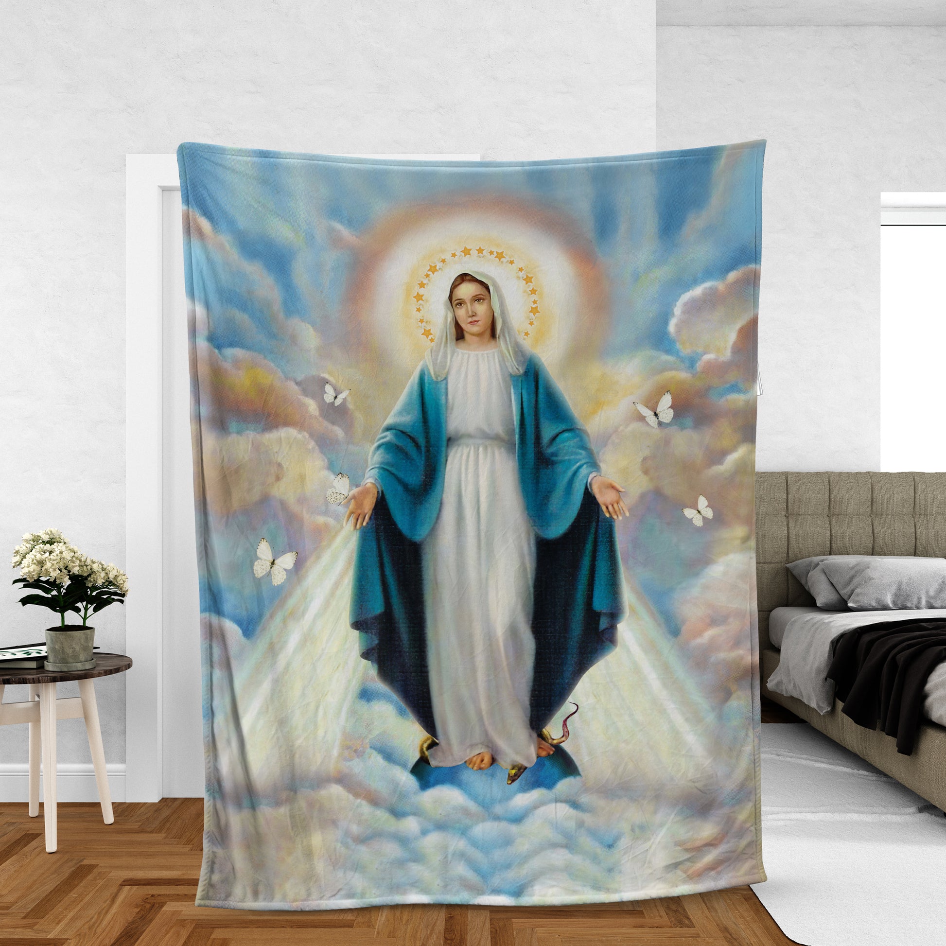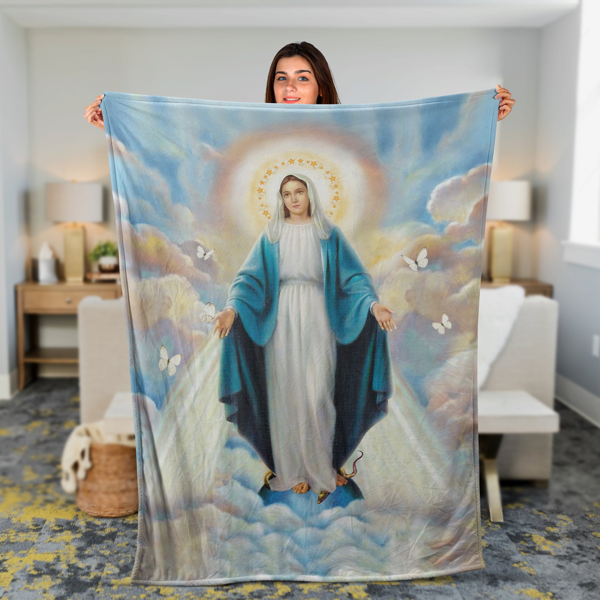 Christian Throw Blanket, Faith Blanket, Jesus Blanket, Inspirational Gift - Beautiful Virgin Mary, Stunning sky, The way to heaven, White butterfly