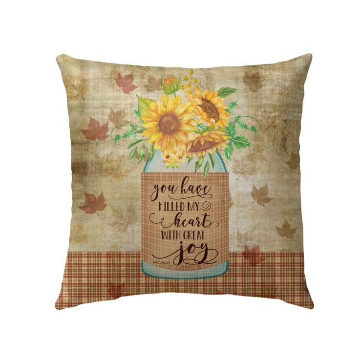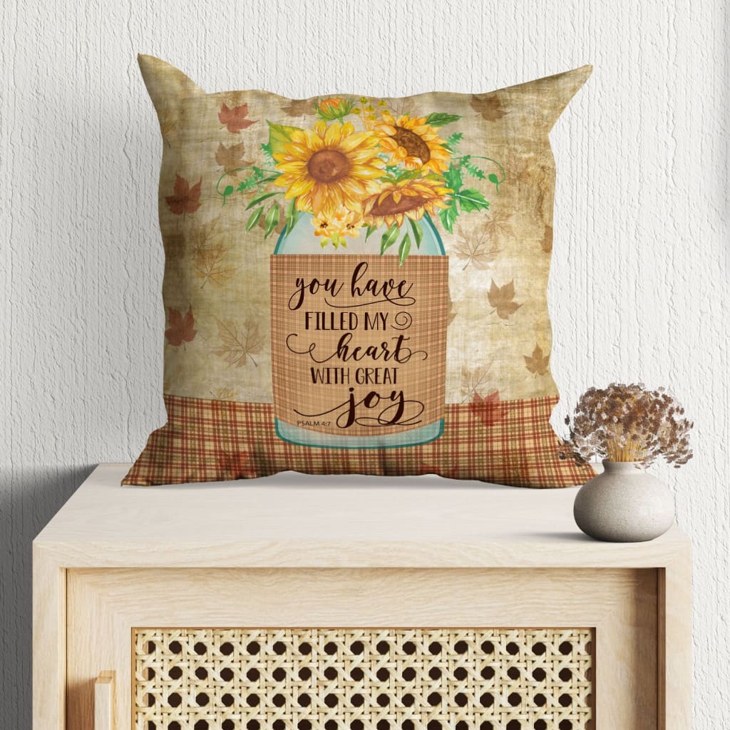 Christian Throw Pillow, Faith Pillow, Jesus Pillow, Bible Verse Pillow, Psalm 4:7 Pillow - You Have Filled My Heart With Great Joy