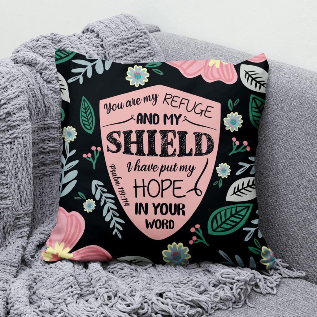 Christian Throw Pillow, Faith Pillow, Jesus Pillow, Psalm 119:114 Bible Verse Pillow - You Are My Refuge And My Shield