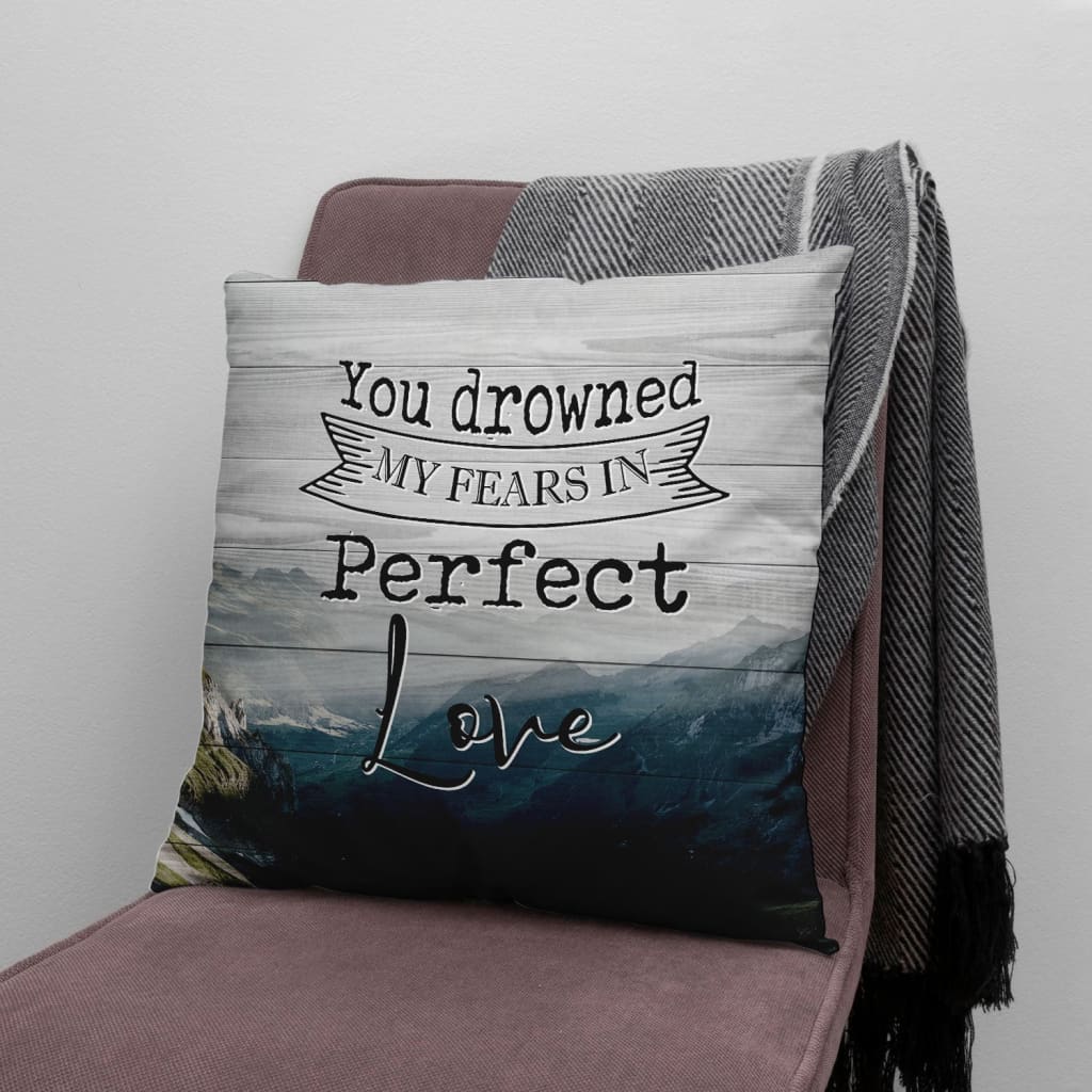 Christian Throw Pillow, Faith Pillow, Jesus Pillow - You Drowned My Fears In Perfect Love