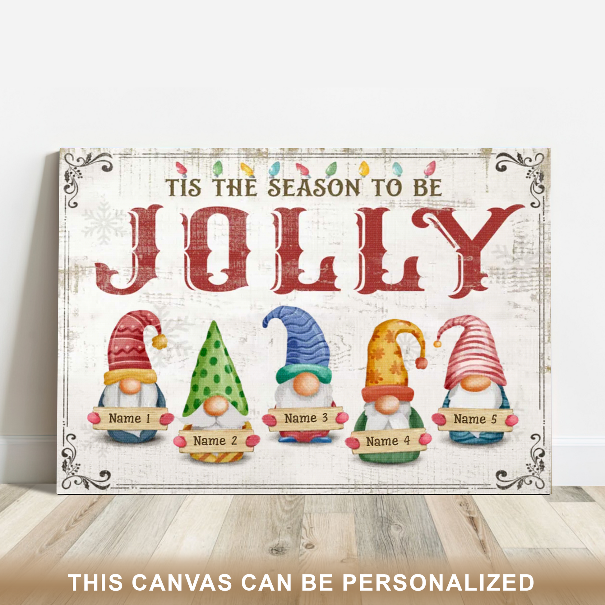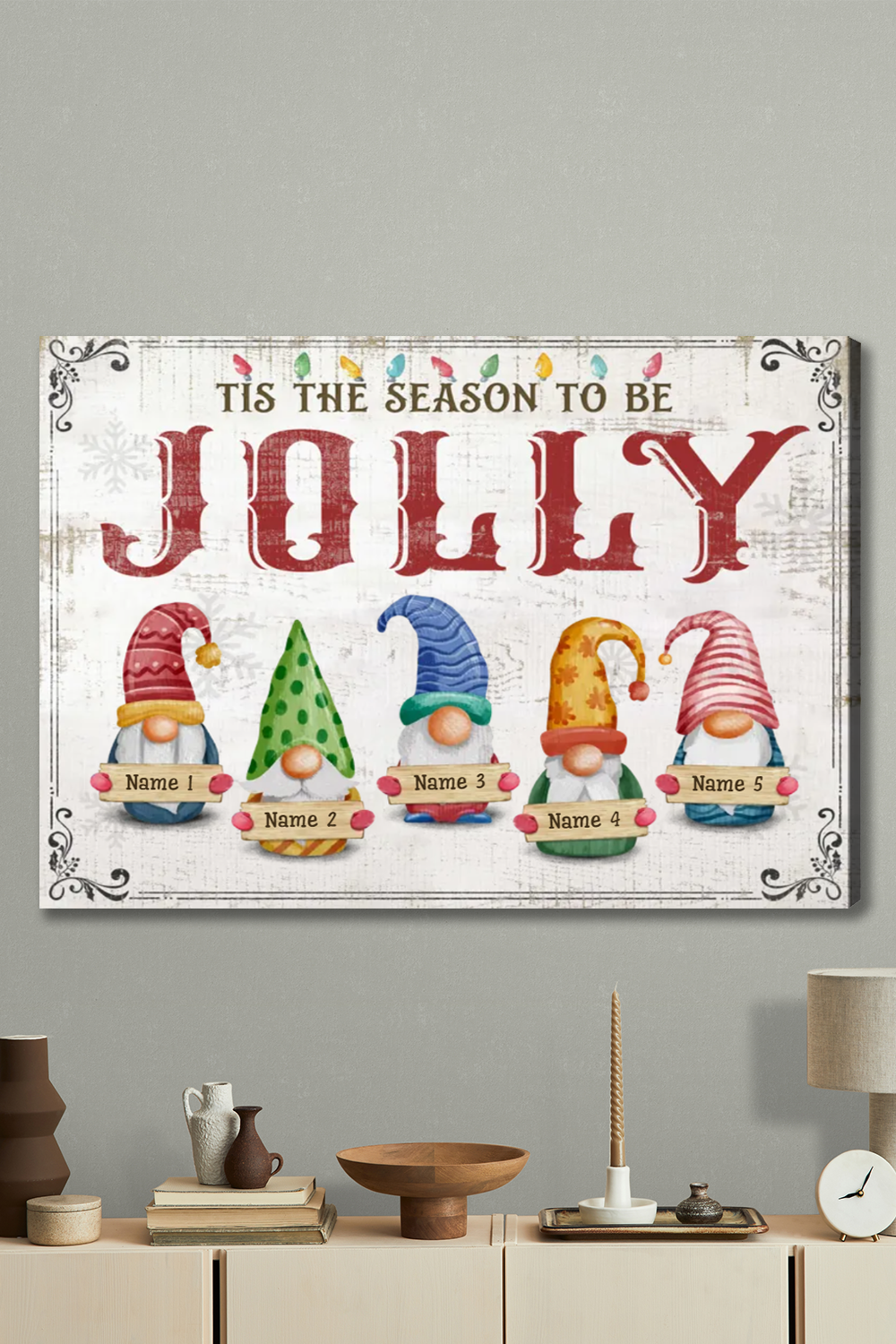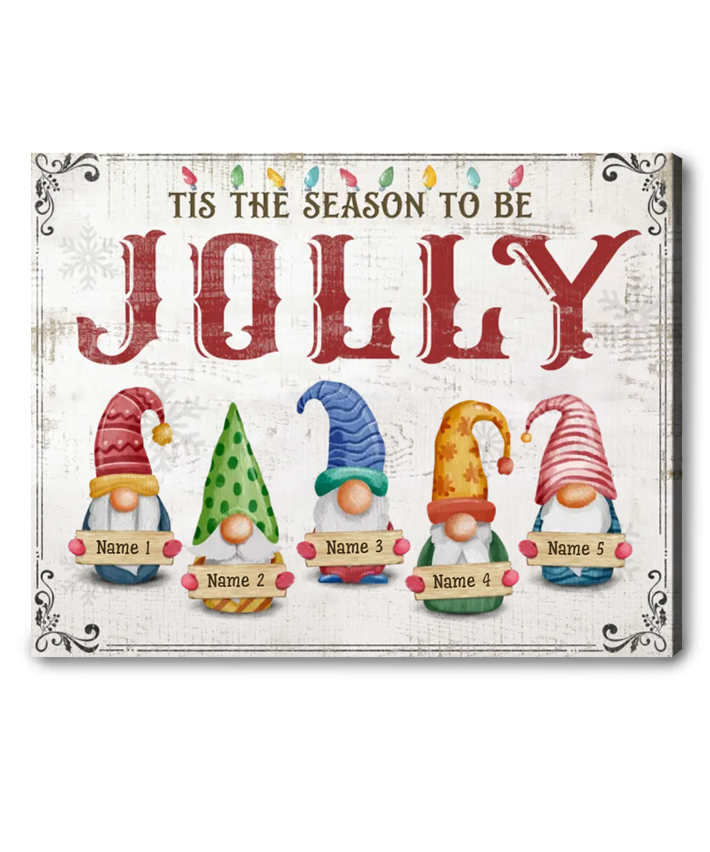Christmas Family Wall Art Decor, Personalized Family Names Gift, Jolly Gnomes Canvas Print For Living Room