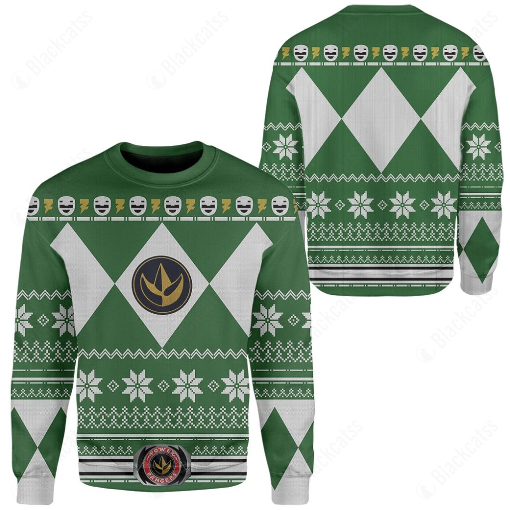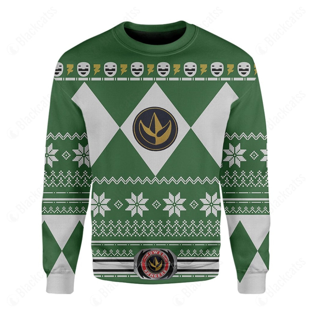 Green Mighty Morphin Power Rangers Costumes C1 - Ugly Christmas Sweater