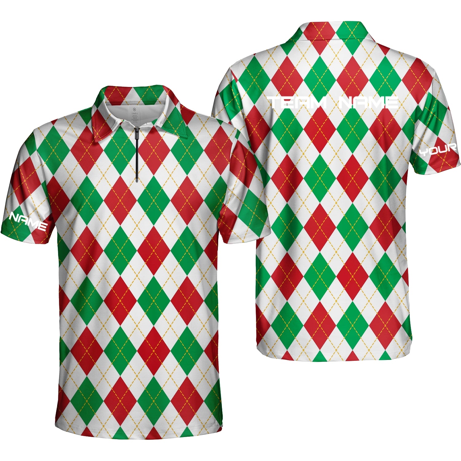Christmas Plaid Argyle Pattern Golf Quarter Zip - Custom Name Apparel - Personalized Gift For Golf Lover, Team