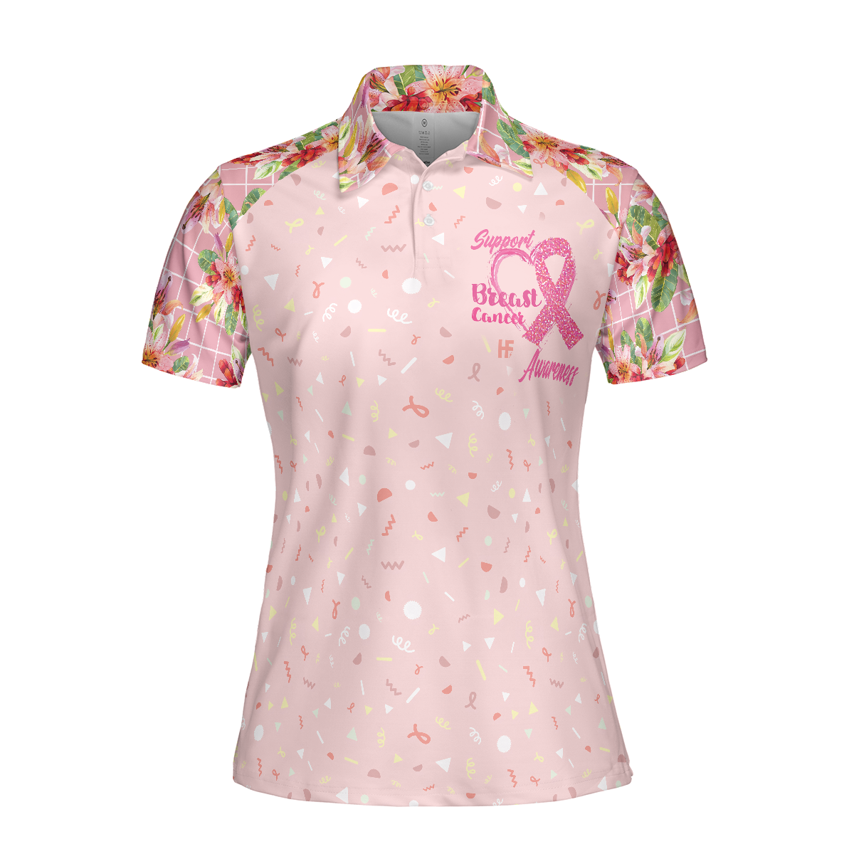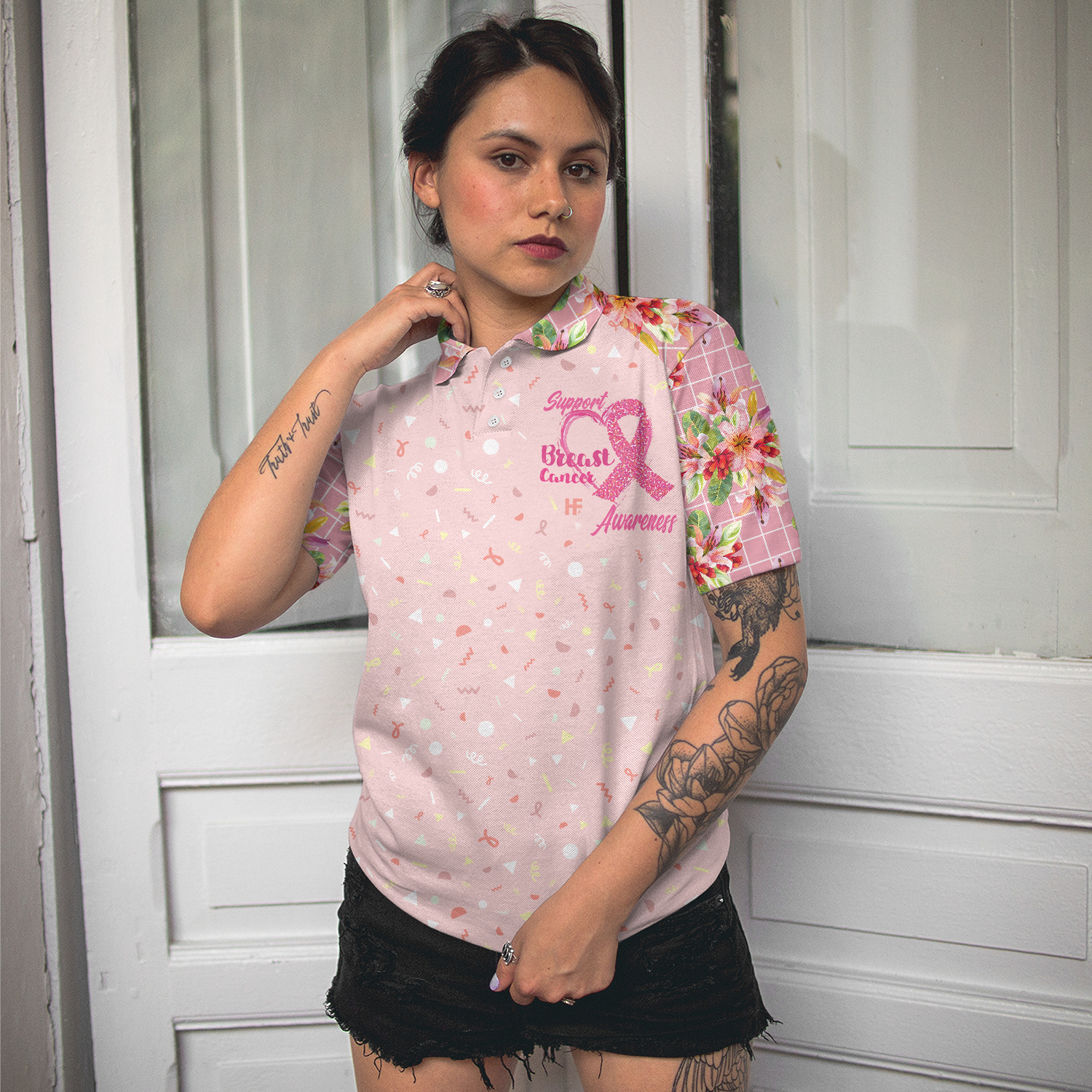 Colorful Flower Breast Cancer Awareness Women Polo Shirt, Fight Hope Love Breast Cancer Awareness Month Short Sleeve Shirt