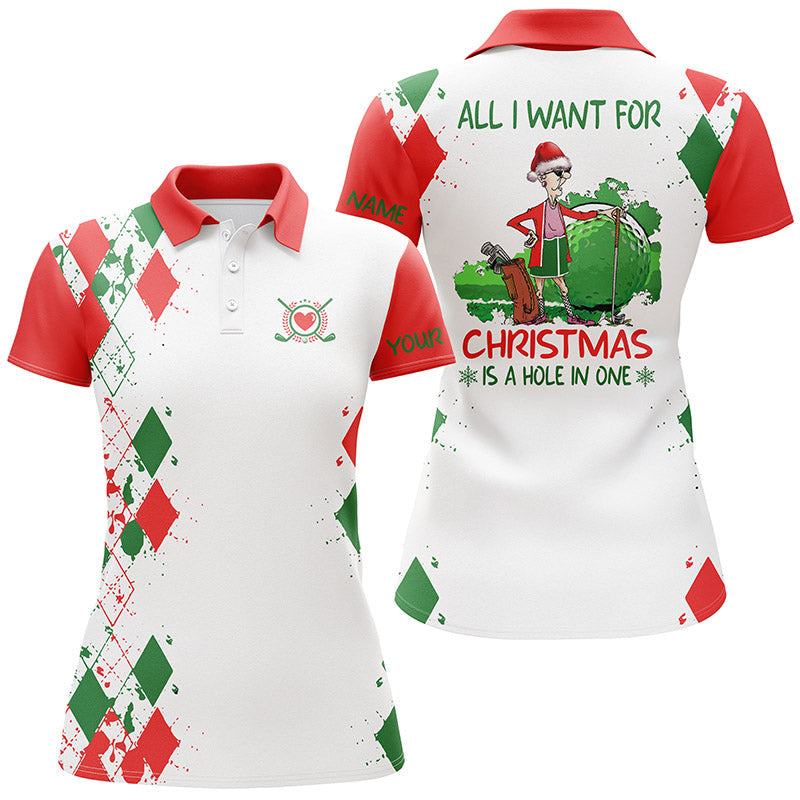 Funny Christmas Womens Golf Polo Shirt All I Want For Christmas Is A Hole In One Custom Golf Gifts