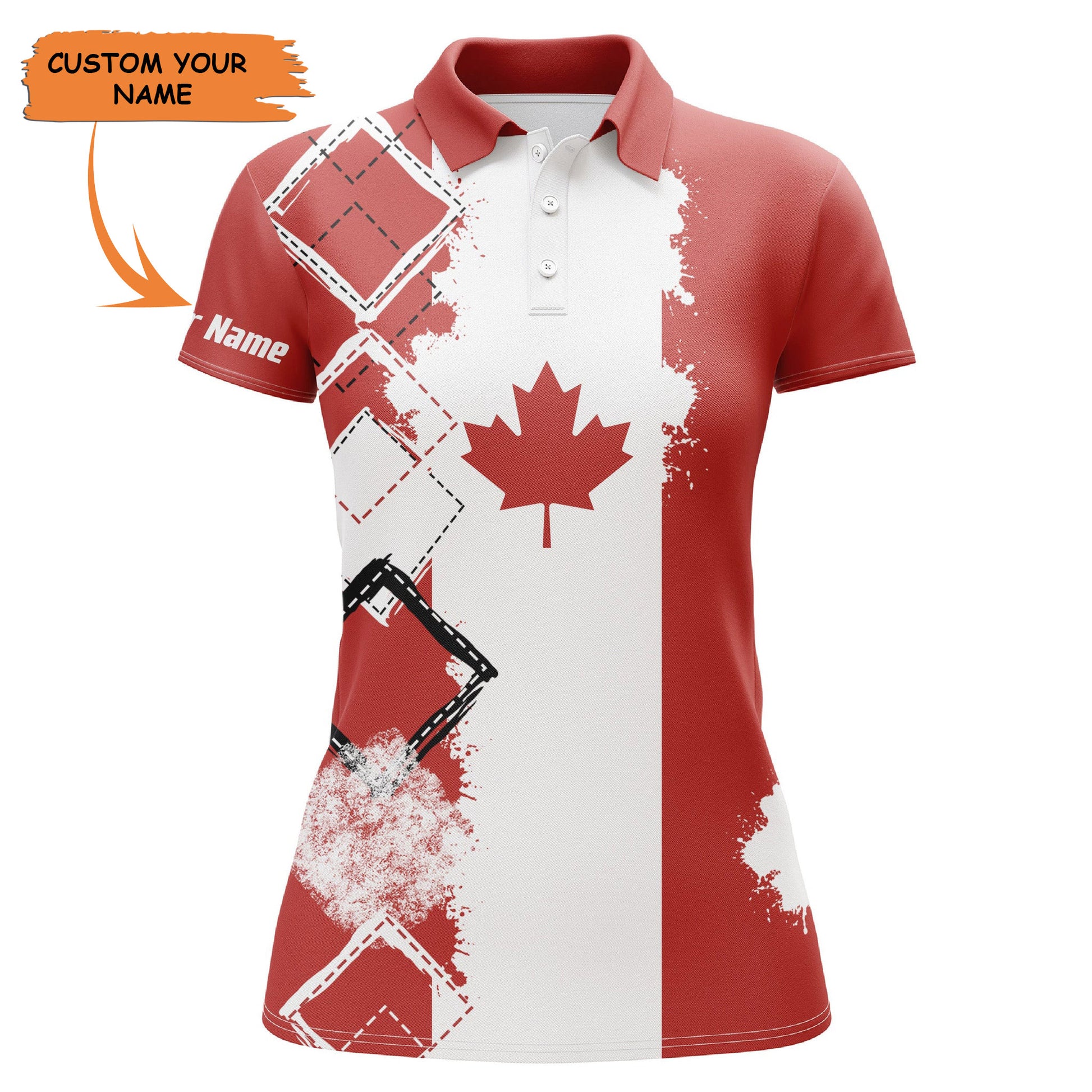 Womens Golf Polo Shirts Canada Flag Patriot Custom Name Golf Shirts For Women, Gift For The Golfers
