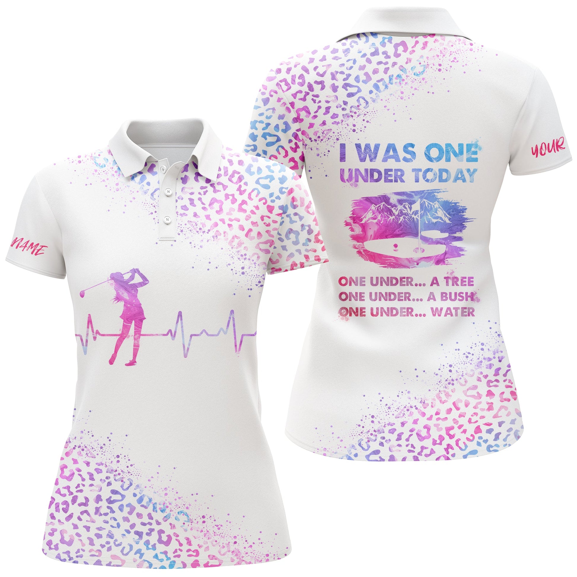 Funny Golf Shirt For Women I Was One Under Today Custom Name Pink Watercolor Leopard Women Polo Shirt