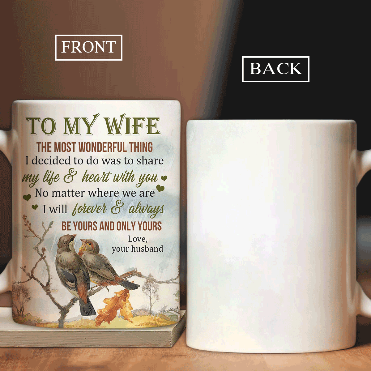 Couple AOP Mug- To my wife, Brown sparrow, Autumn forest Mug - Gift for couple, lover - I will forever and always be yours and only yours - Family Mug