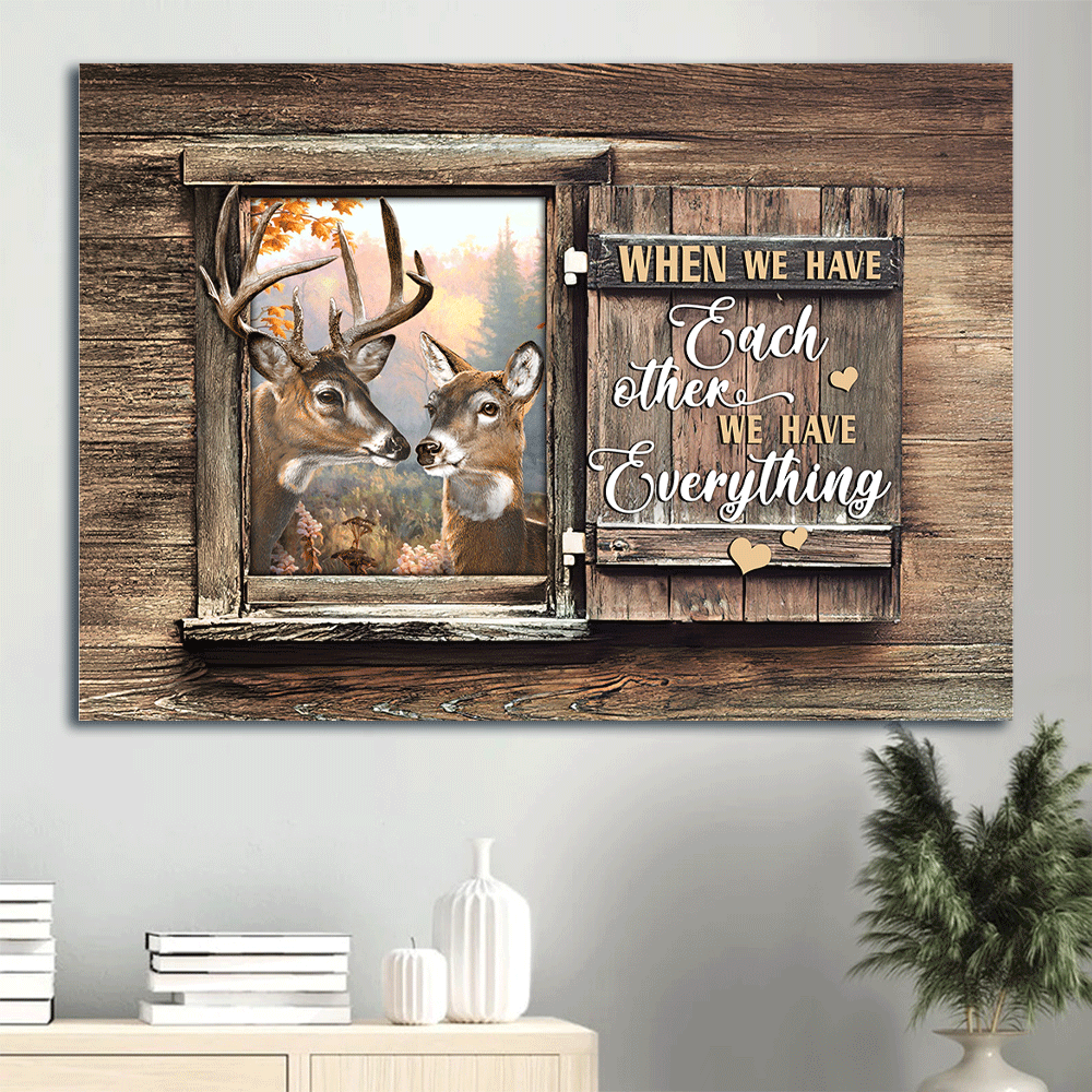 Couple Landscape Canvas- Deer couple, forest painting, Window frame canvas- Gift for couple, lover, husband. wife, boyfriend, girlfriend- When we have each other, We have everything