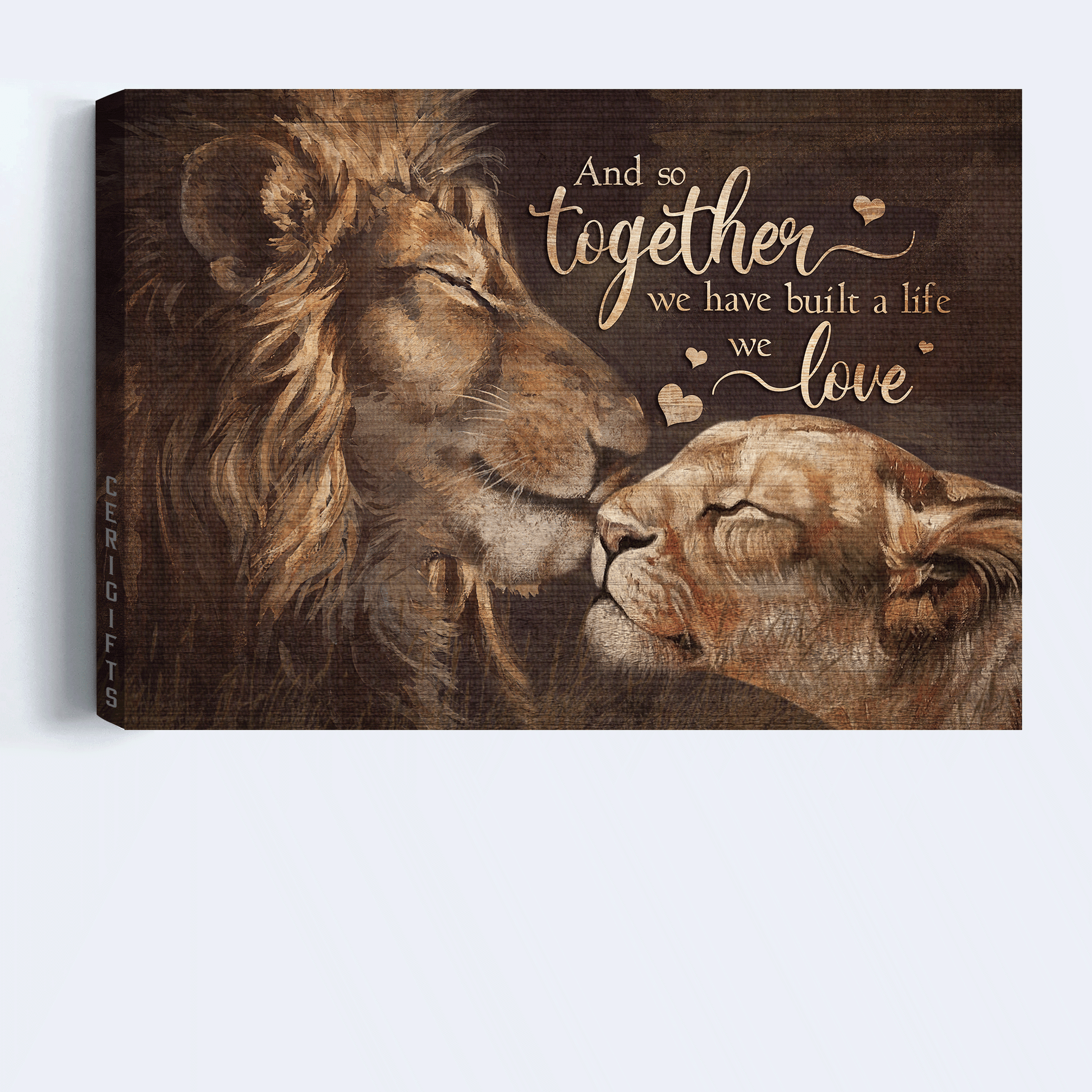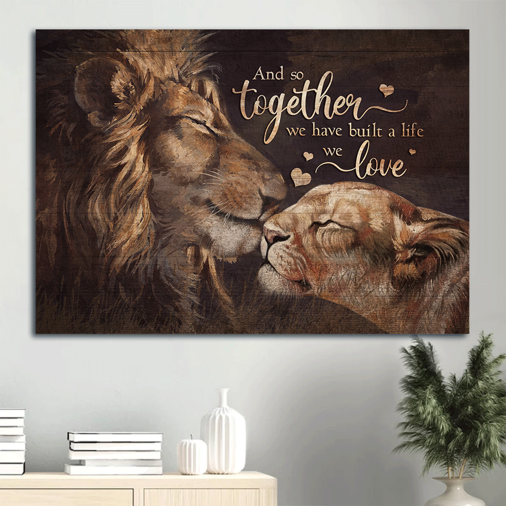 Couple Landscape Canvas - Lion painting, Lion couple Landscape Canvas - Gift For Couple, Spouse, Lover - Together we have built a life we love Landscape Canvas