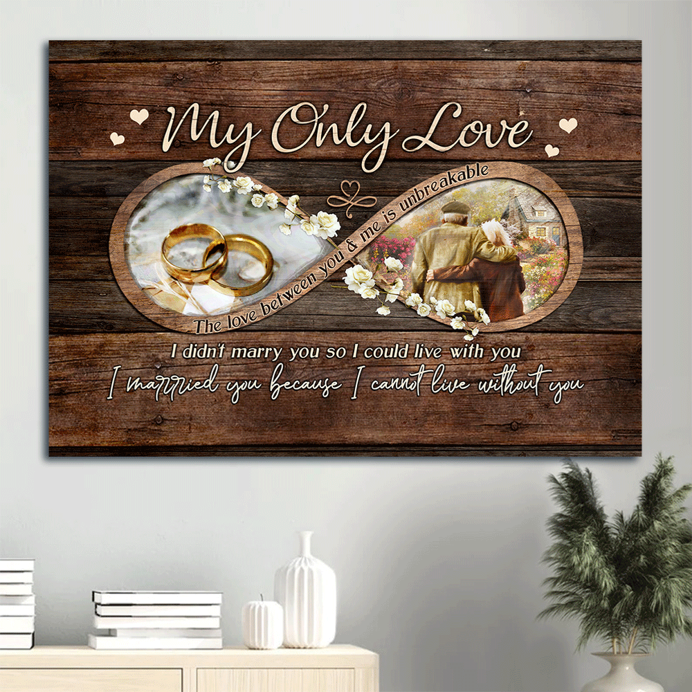 With the well-blending color, images of a couple of rings, the infinity symbol on a wooden background, and an emotional message “The love between you and me is unbreakable”, this Couple Landscape Canvas - The Infinity Symbol, Wedding Rings, Old Loving Couple Canvas - Valentine's Day Gift For Couple, Spouse, Lover - The Love Between You And Me Is Unbreakable Canvas Prints, Wall Art will always remind you of your love and also be a valued noble companion for both of you.