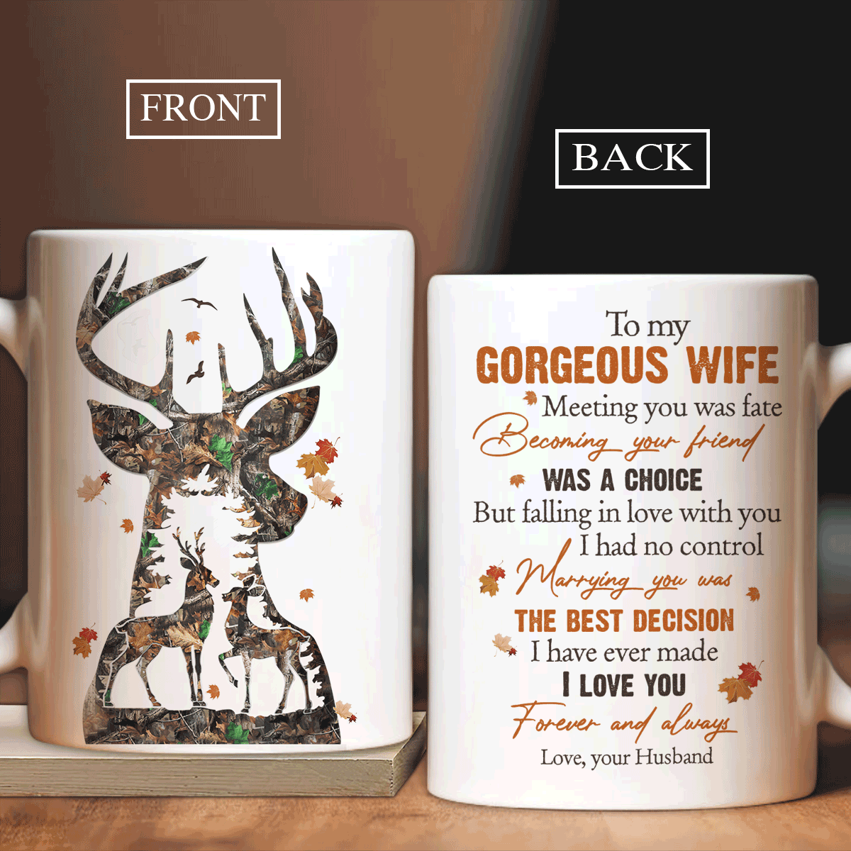 Couple White Mug - To my wife, Brown deer drawing, Maple leaf- Gift for couple, lover- I love you forever and always - Family White Mug