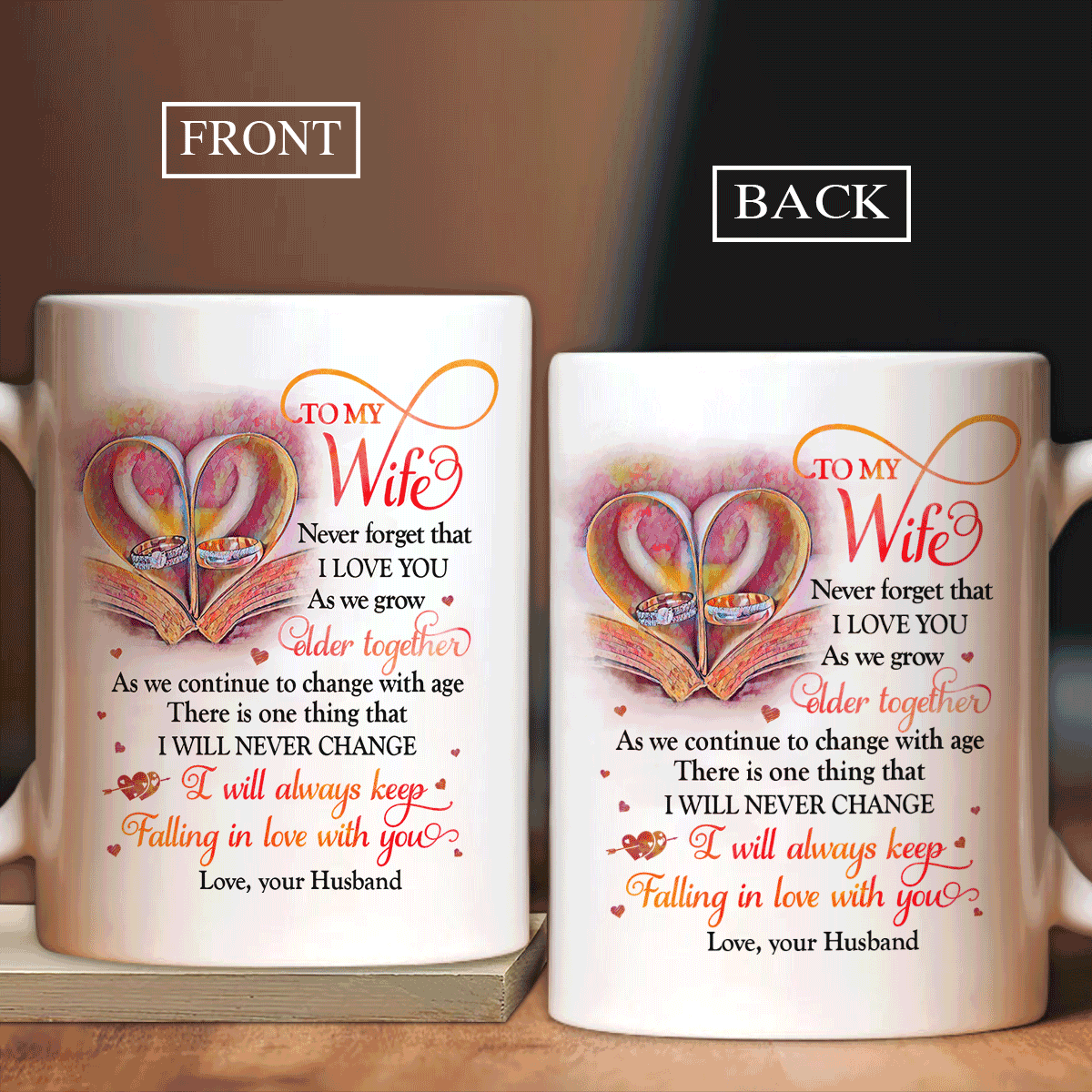 Couple White Mug - To my wife, Couple ring, Antique book - Gift for couple, lover - Never forget that I love you - Family White Mug