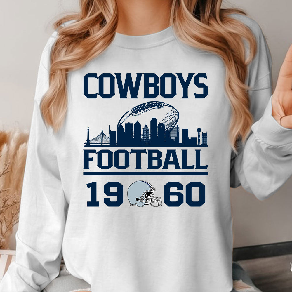 Cowboys Football Skyline T-Shirts For Men Women Family Love Cowboys Sport, 1960 Cowboys Football T-Shirts.