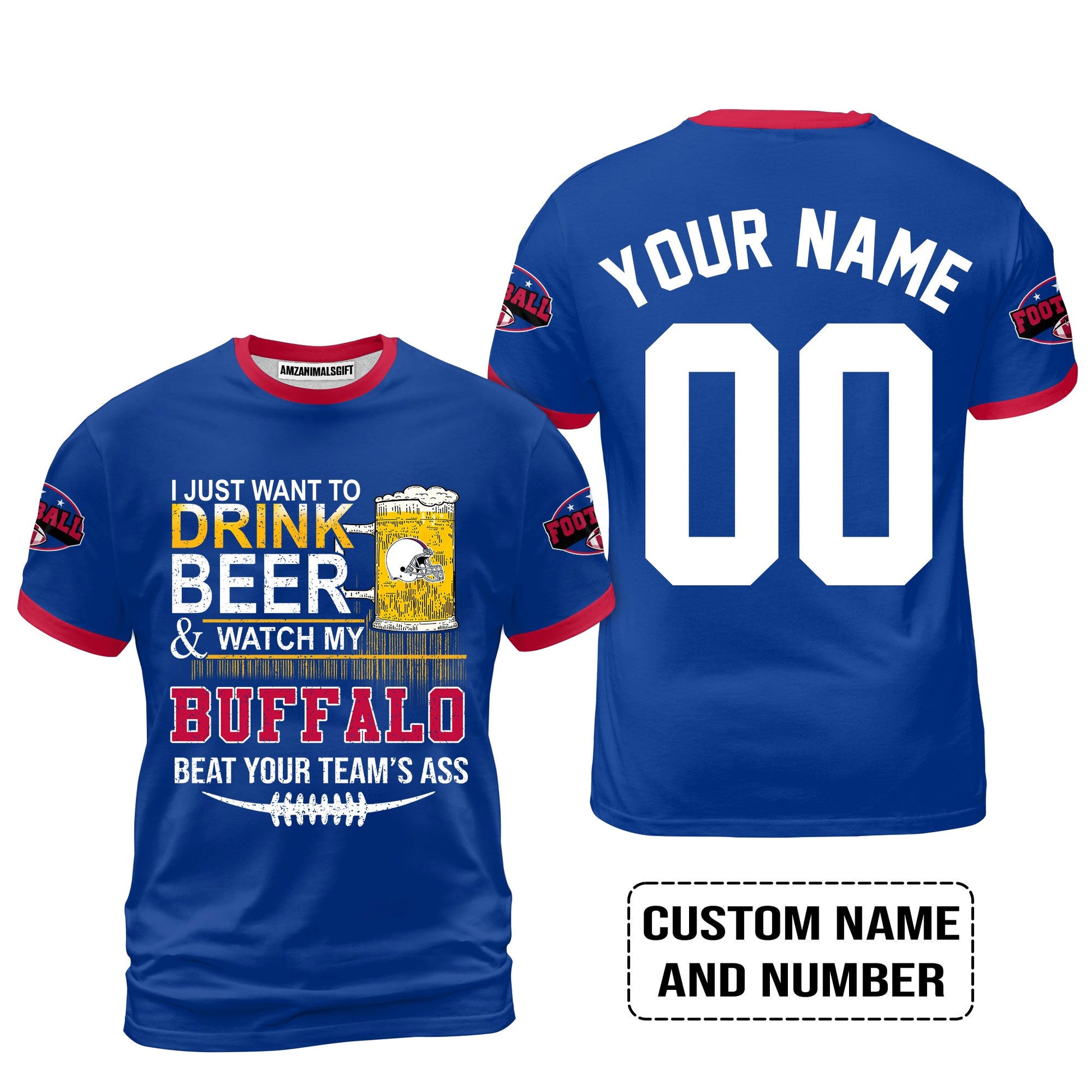 Custom Buffalo American Football Beer Hoodie, Just Want To Drink Beer & Watch My Buffalo American Football Beat Your Team Custom Shirts.