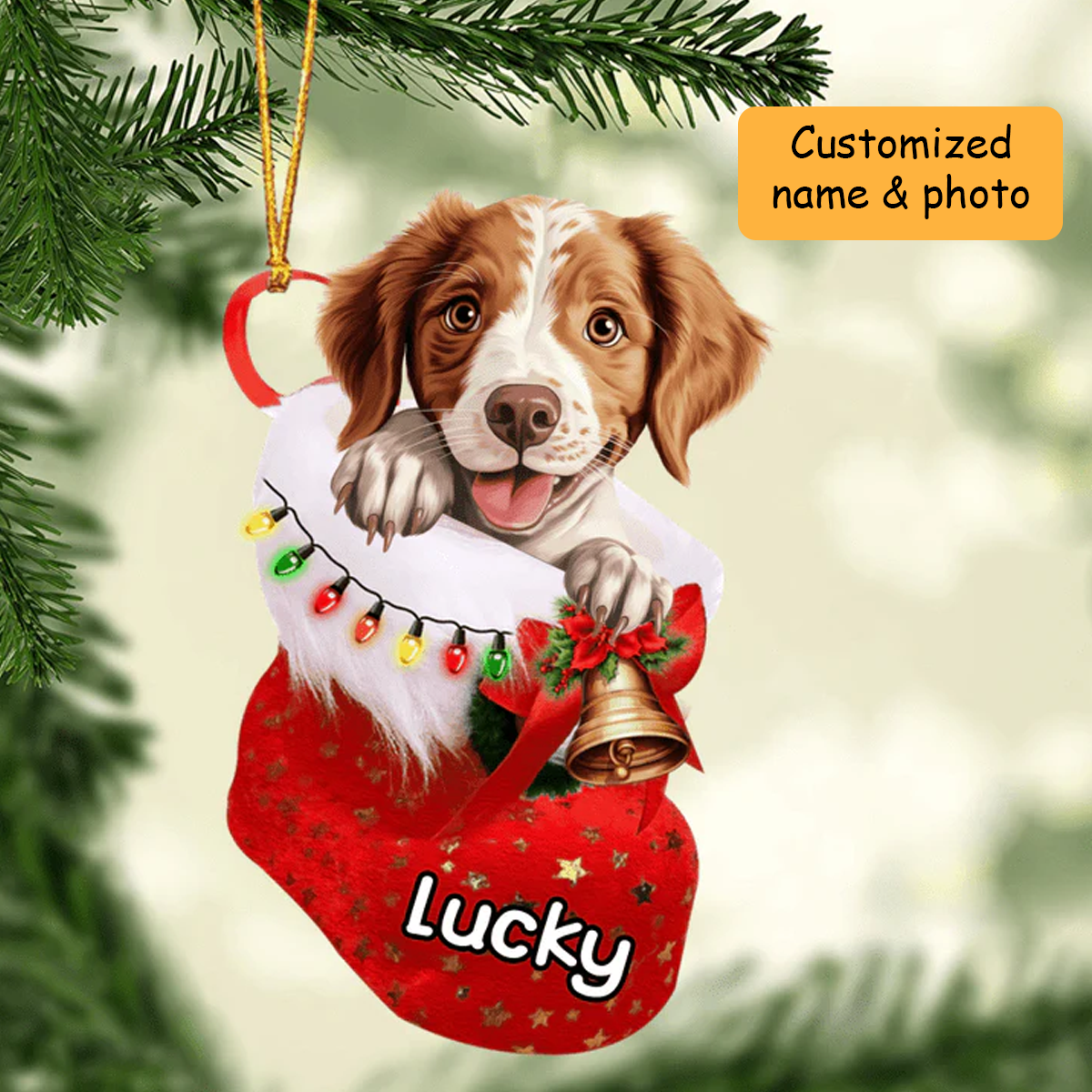 Personalized Brittany In Christmas Stocking Acrylic Ornament, Christmas Gifts Ornament for Dog Lover