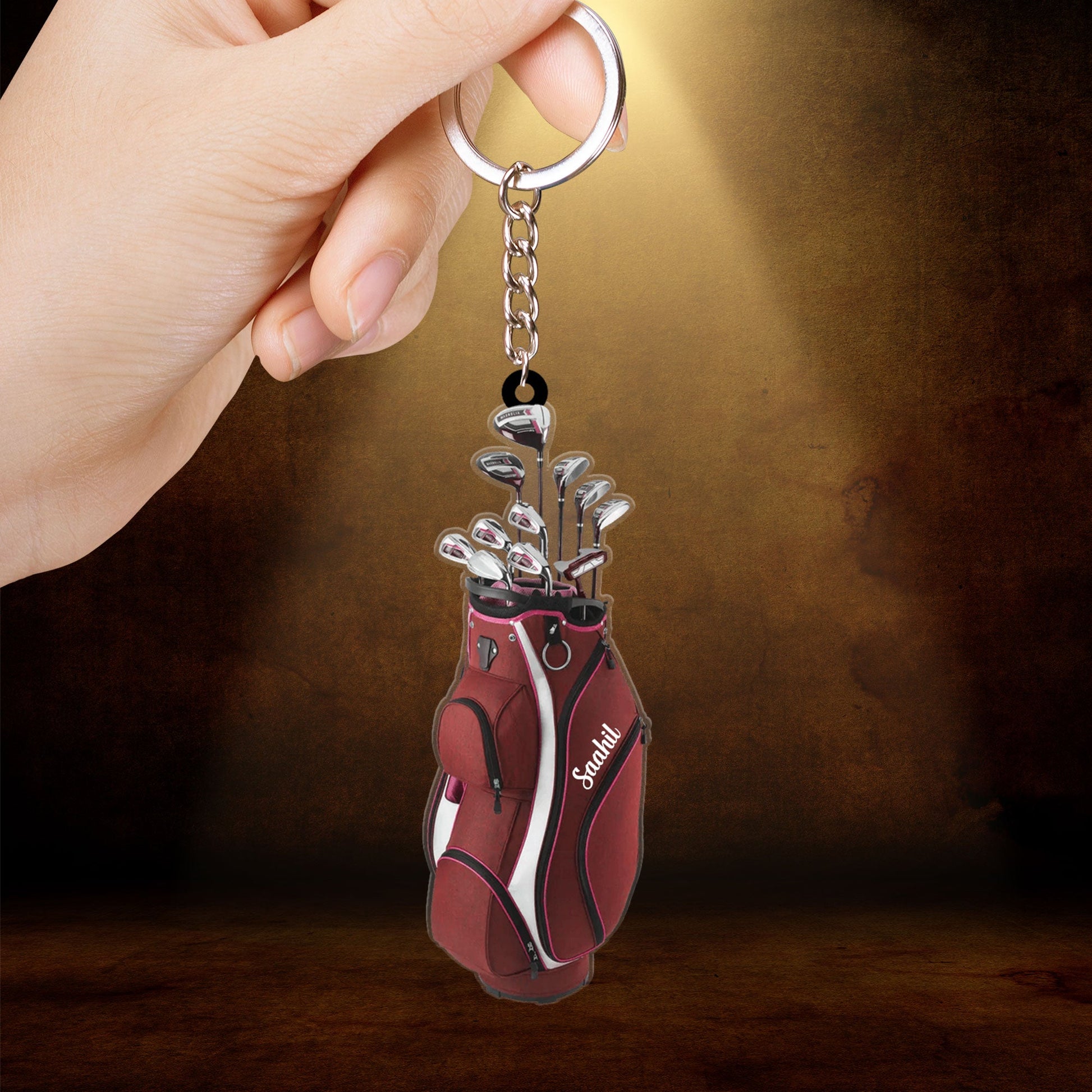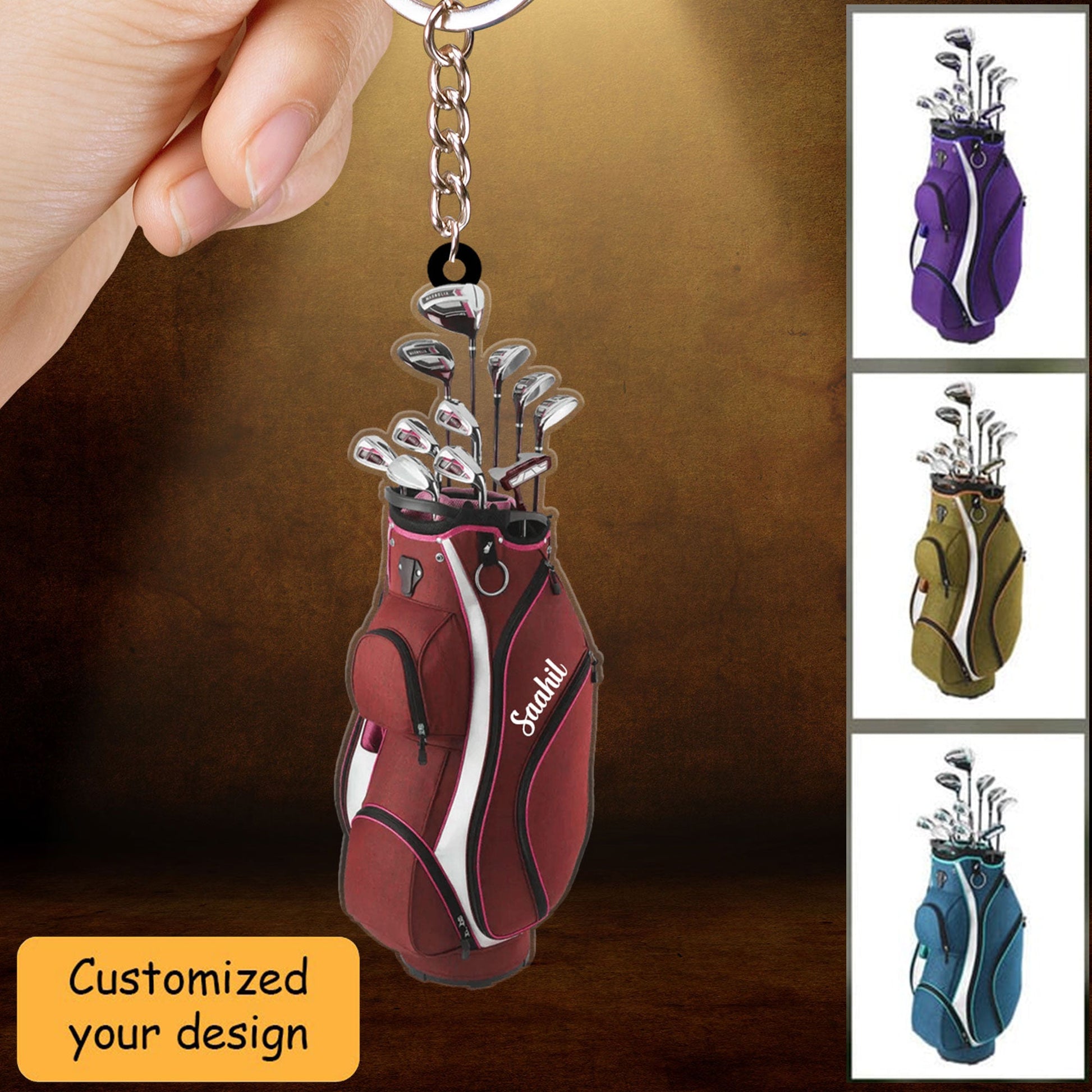 Custom Golf Acrylic Christmas Keychain, Personalized Golf Bag Acrylic Keychain For Golf Lover, Christmas, New Year