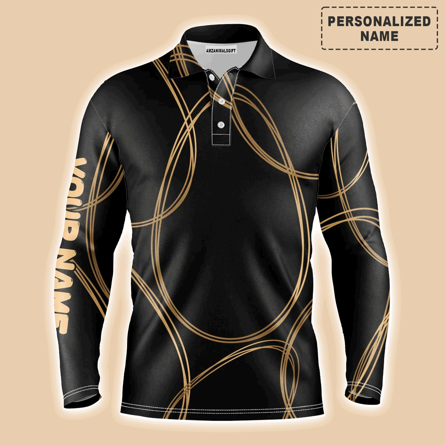 Custom Golf Long Sleeve Men Polo Shirt - Black Gold Egg Pattern Golf Men Polo Shirt - Perfect Polo Shirt For Men, Golfers