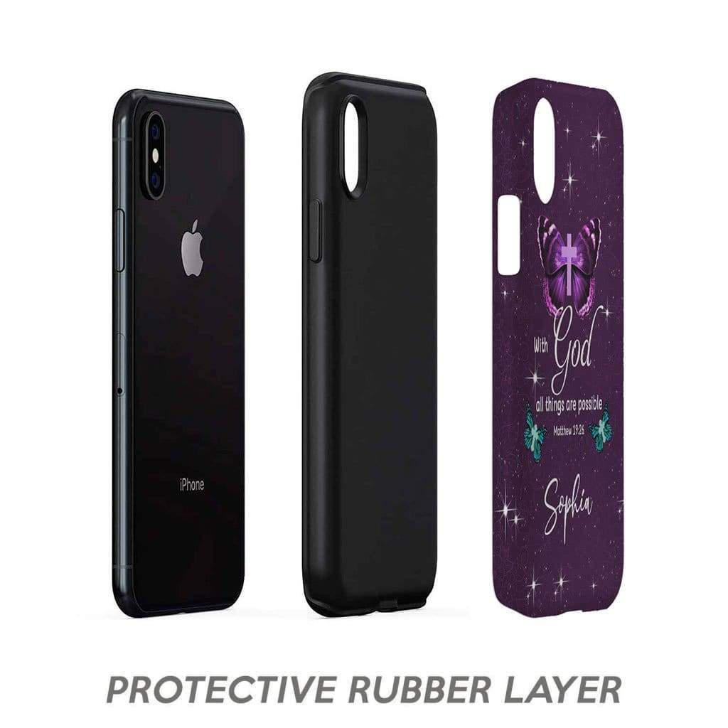 Custom Name Tough Phone Cases, Inspirational Personalized Phone Cases, Mathew 19:26 God All Things Phone Case, Gift For Friend, Family, Mother's Day