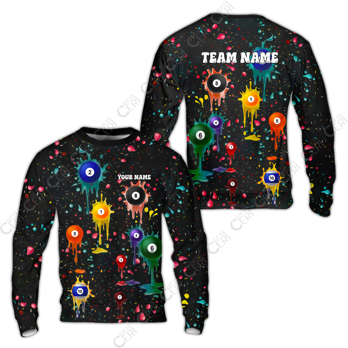 Customized 8 Ball Pool Sweatshirt, Billiards 8-Ball Colorful Paint-Splash, Billiards Jerseys