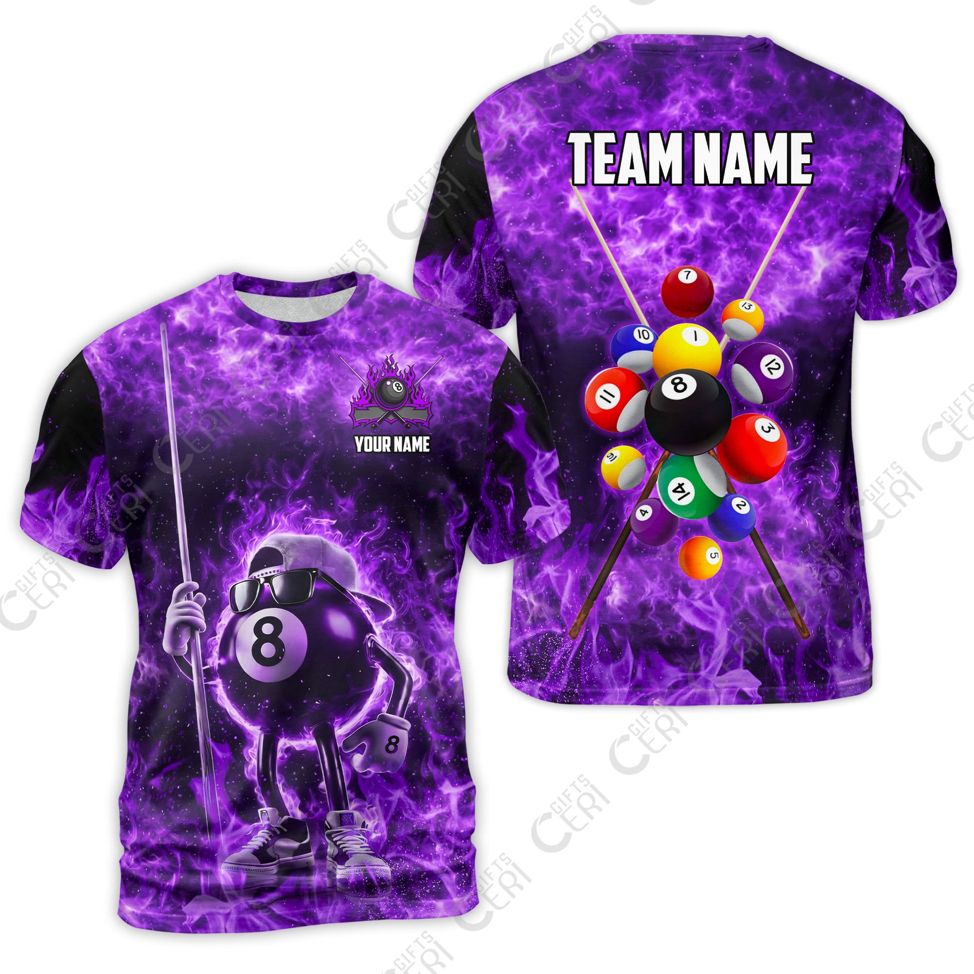 Customized 8 Ball Pool T-Shirt, 8-Ball Wearing Cap And Sunglasses Flaming Burn, Billiard Jerseys