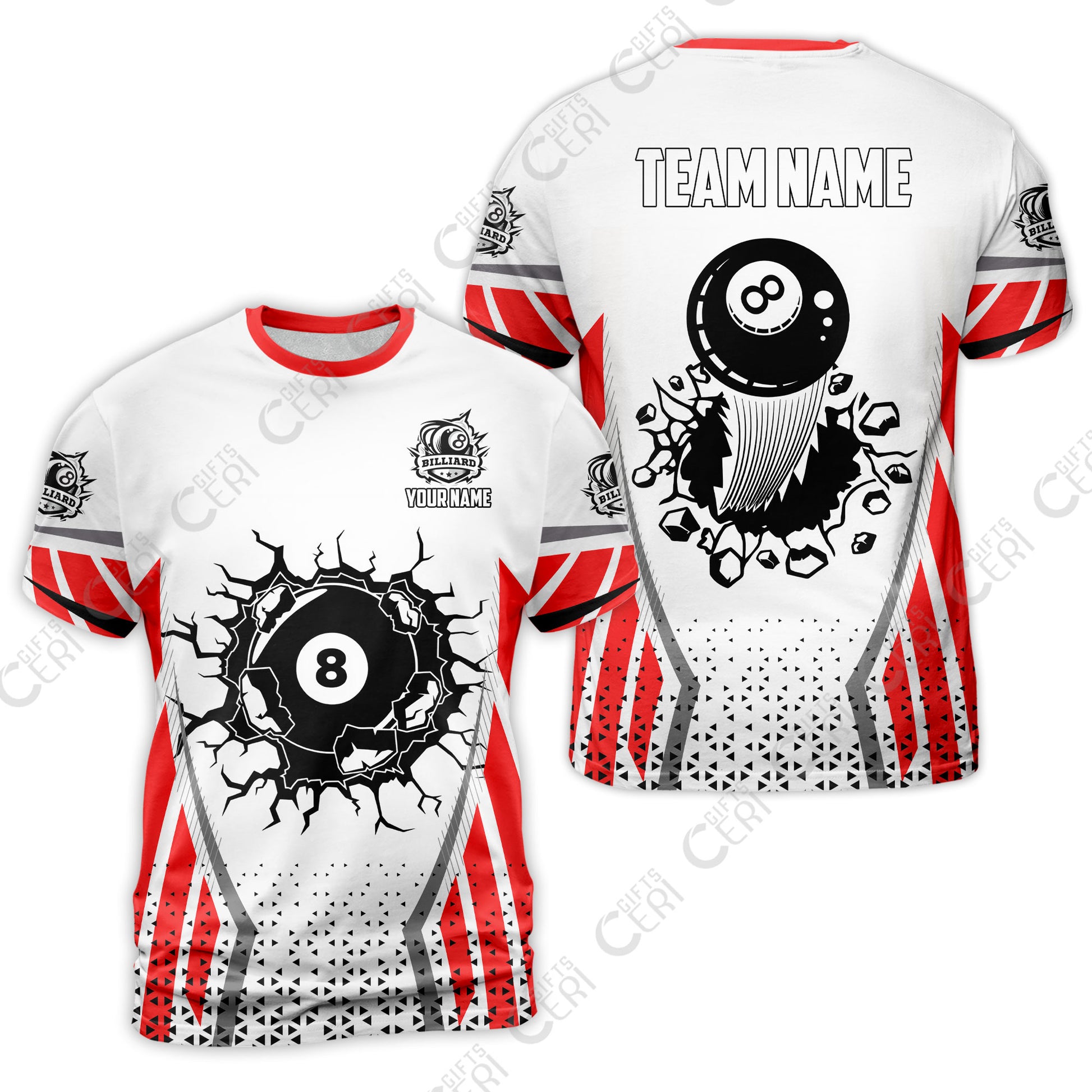 Customized 8 Ball Pool T-Shirt, Billiard Triangle Pattern, 8-Ball Breaks The Wall, Billiard Jerseys