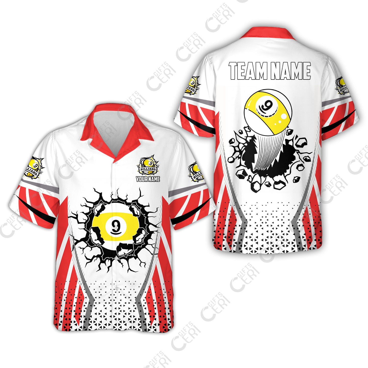 Customized 9 Ball Pool Hawaiian Shirt, Billiard Triangle Pattern, 9-Ball Breaks The Wall, Billiard Jerseys