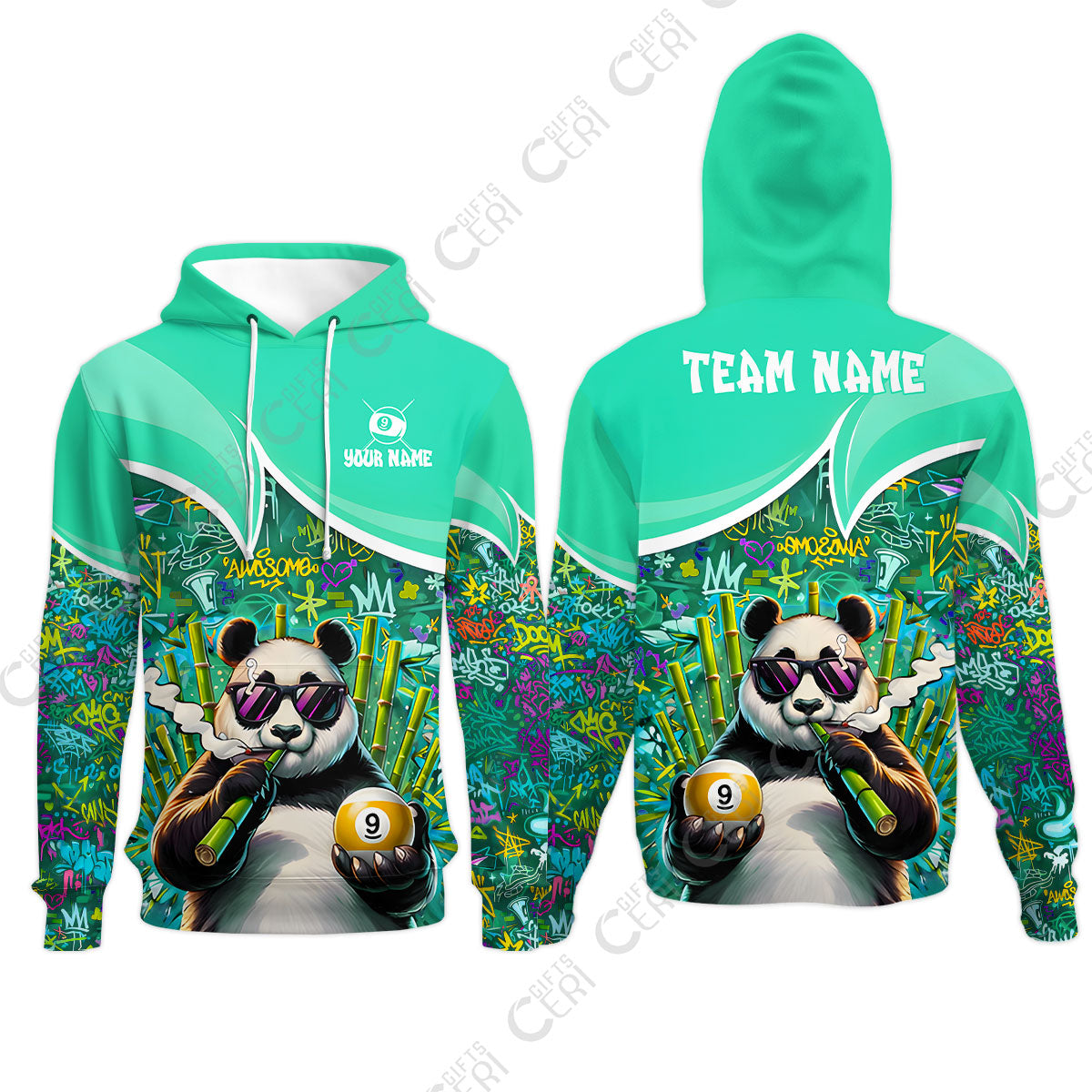 Customized 9 Ball Pool Hoodies, 9-Ball Panda Bamboo Billiards, Billiards Jerseys