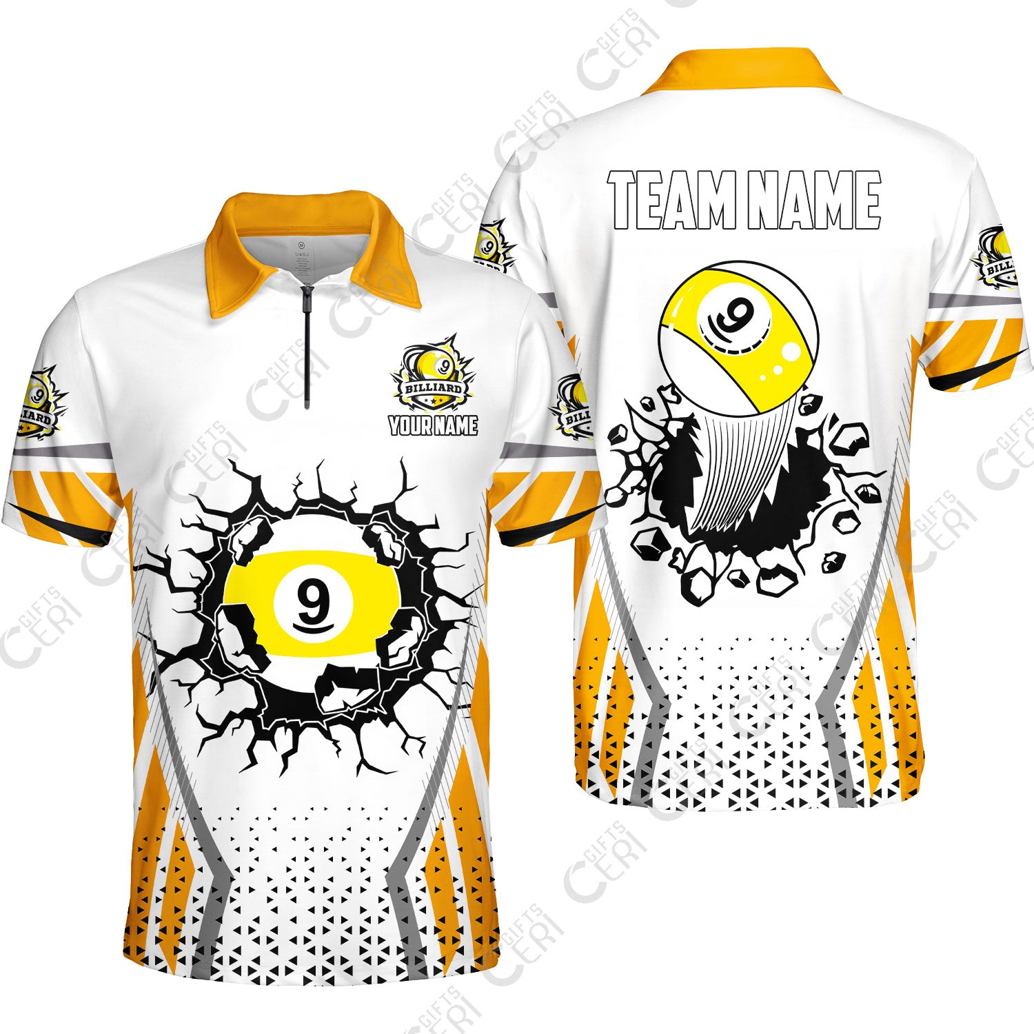 Customized 9 Ball Pool Quarter-Zip Polo Shirt, Billiard Triangle Pattern, 9-Ball Breaks The Wall, Billiard Jerseys