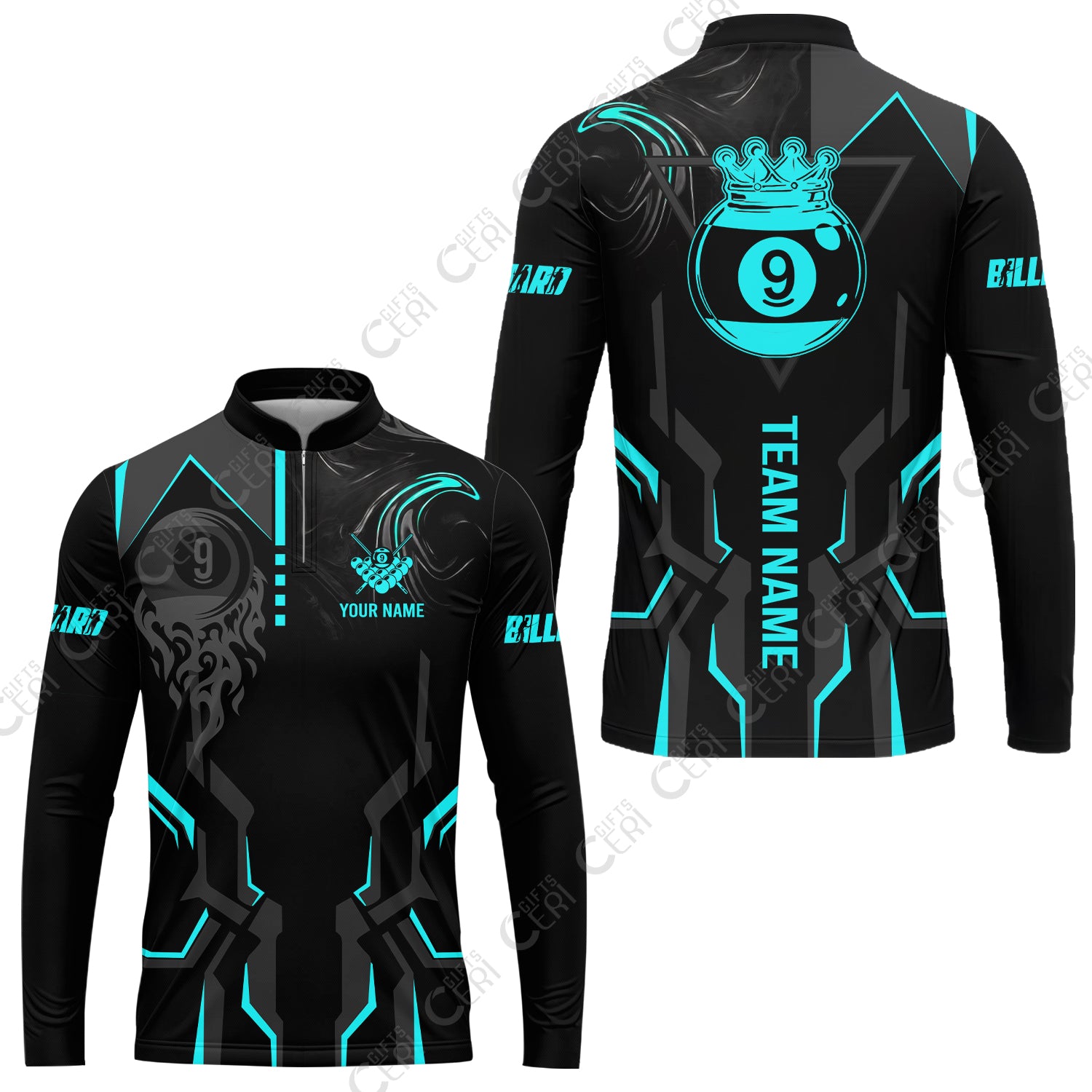 Customized 9 Ball Pool Stand Collar Quarter-Zip Long Sleeve Jersey, 9-Ball Liquid Effect Smoke, Billiard Jerseys
