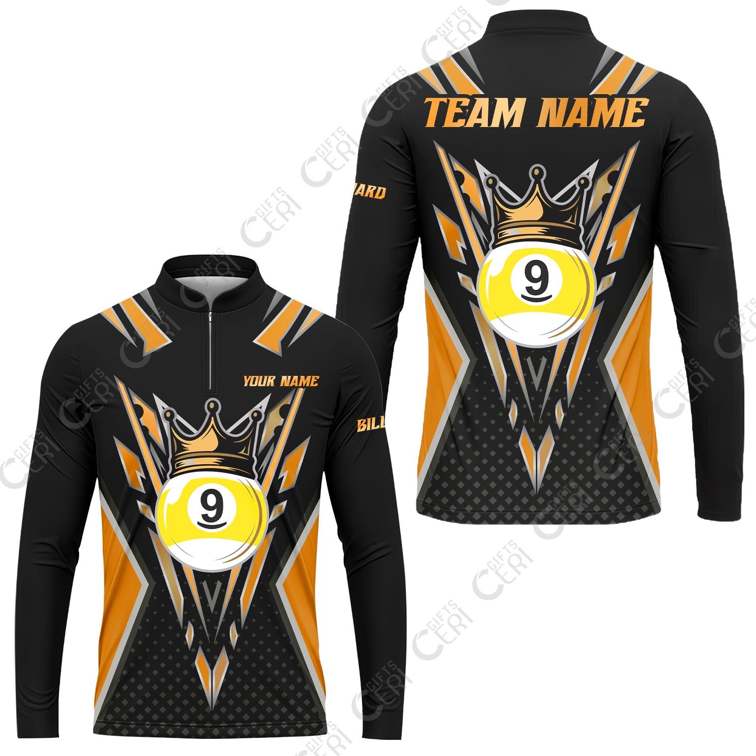 Customized 9 Ball Pool Stand Collar Quarter-Zip Long Sleeve Jersey, Billiard 9-Ball Crown, Billiard Jerseys