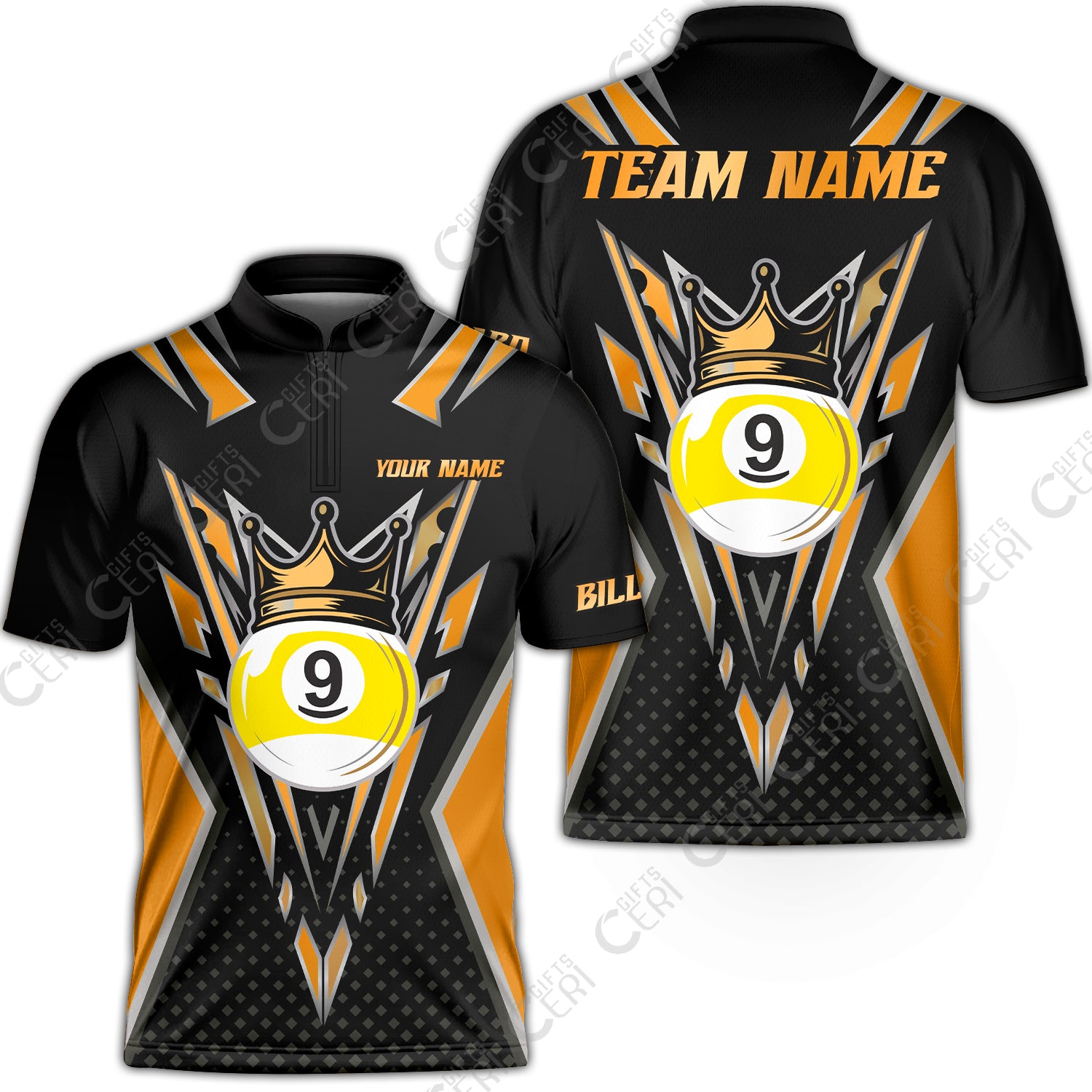Customized 9 Ball Pool Stand Collar Quarter-Zip Short Sleeve Jersey, Billiard 9-Ball Crown, Billiard Jerseys