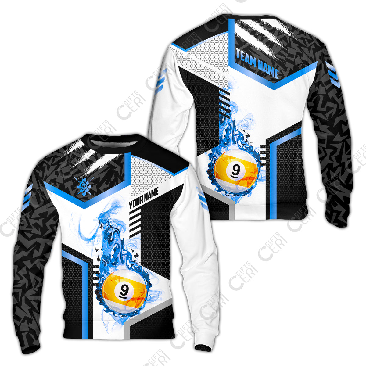 Customized 9 Ball Pool Sweatshirt, Flaming 9-Ball Graphic, Billiards Jersey