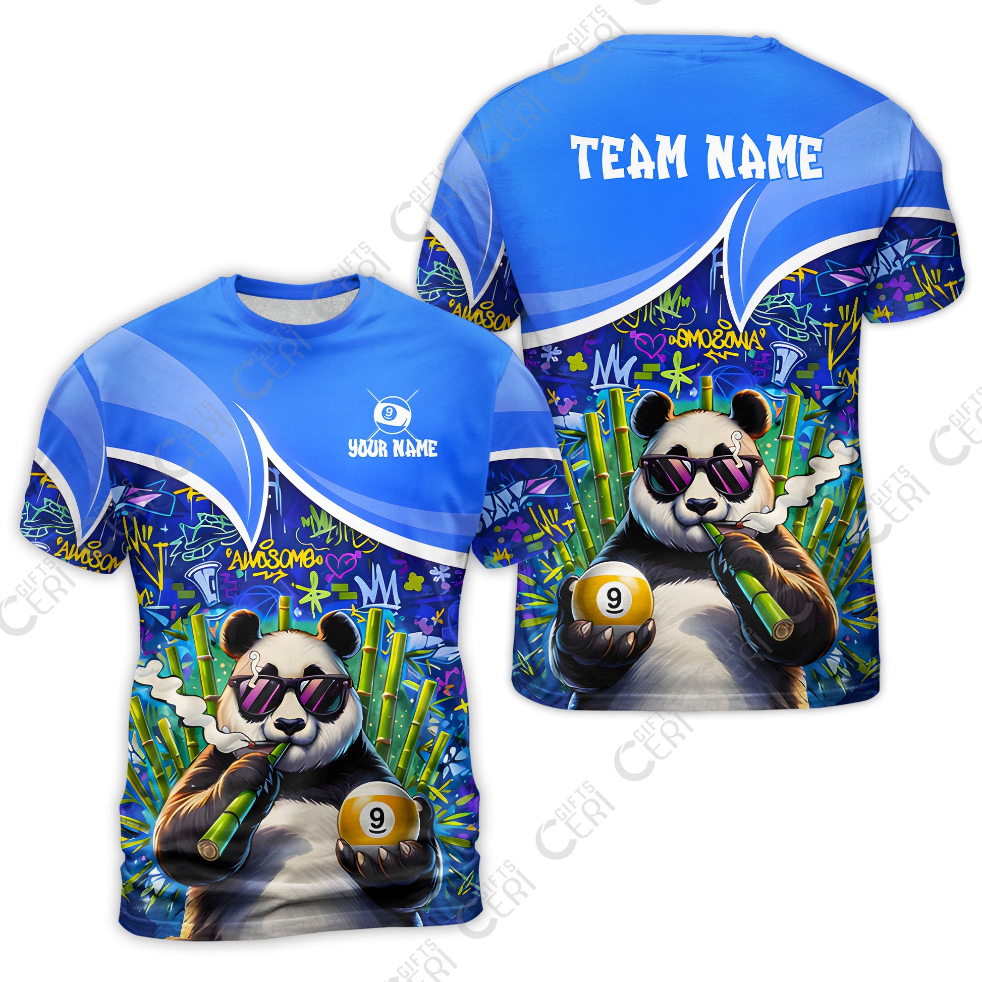 Customized 9 Ball Pool T-Shirt, 9-Ball Panda Bamboo Billiards, Billiards Jerseys