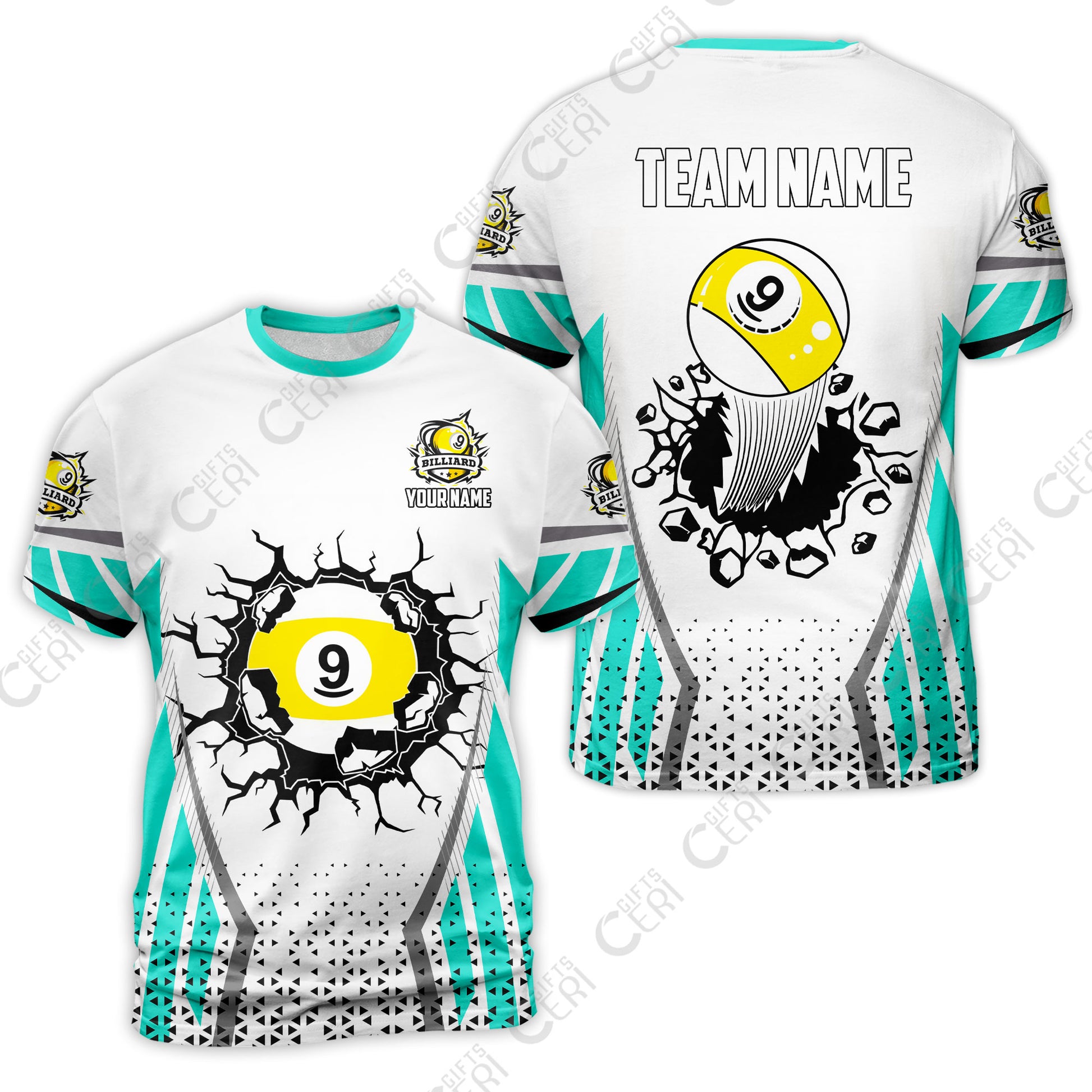 Customized 9 Ball Pool T-Shirt, Billiard Triangle Pattern, 9-Ball Breaks The Wall, Billiard Jerseys