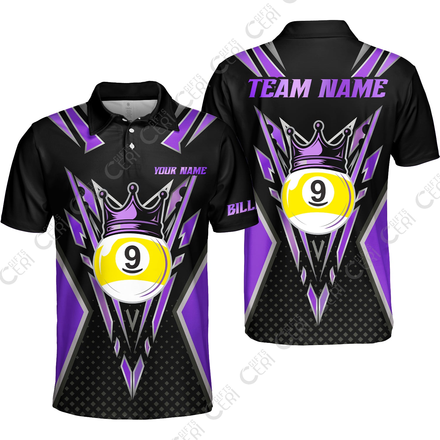 Customized 9 Ball Pool Unisex Polo Shirt, Billiard 9-Ball Crown, Billiard Jerseys