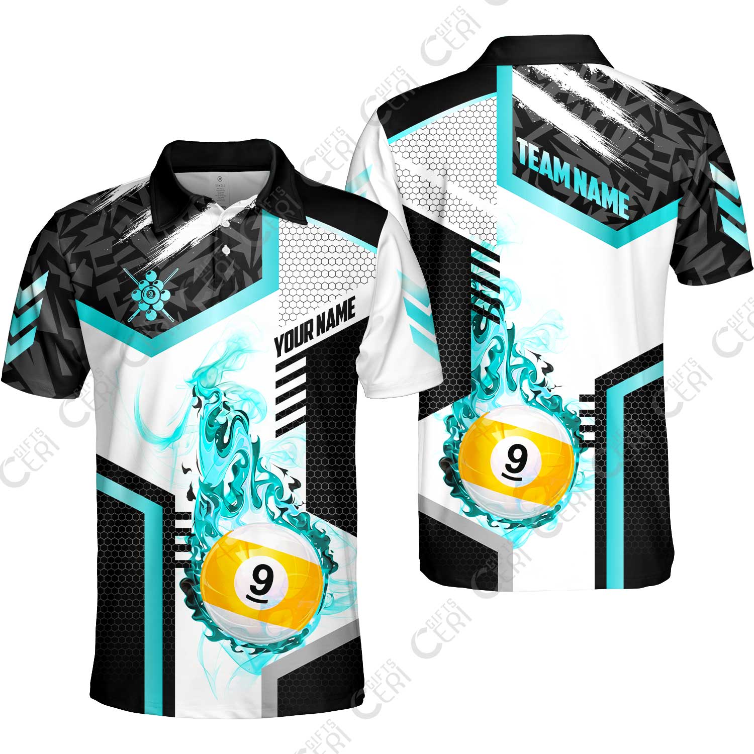 Customized 9 Ball Pool Unisex Polo Shirt, Flaming 9-Ball Graphic, Billiards Jersey