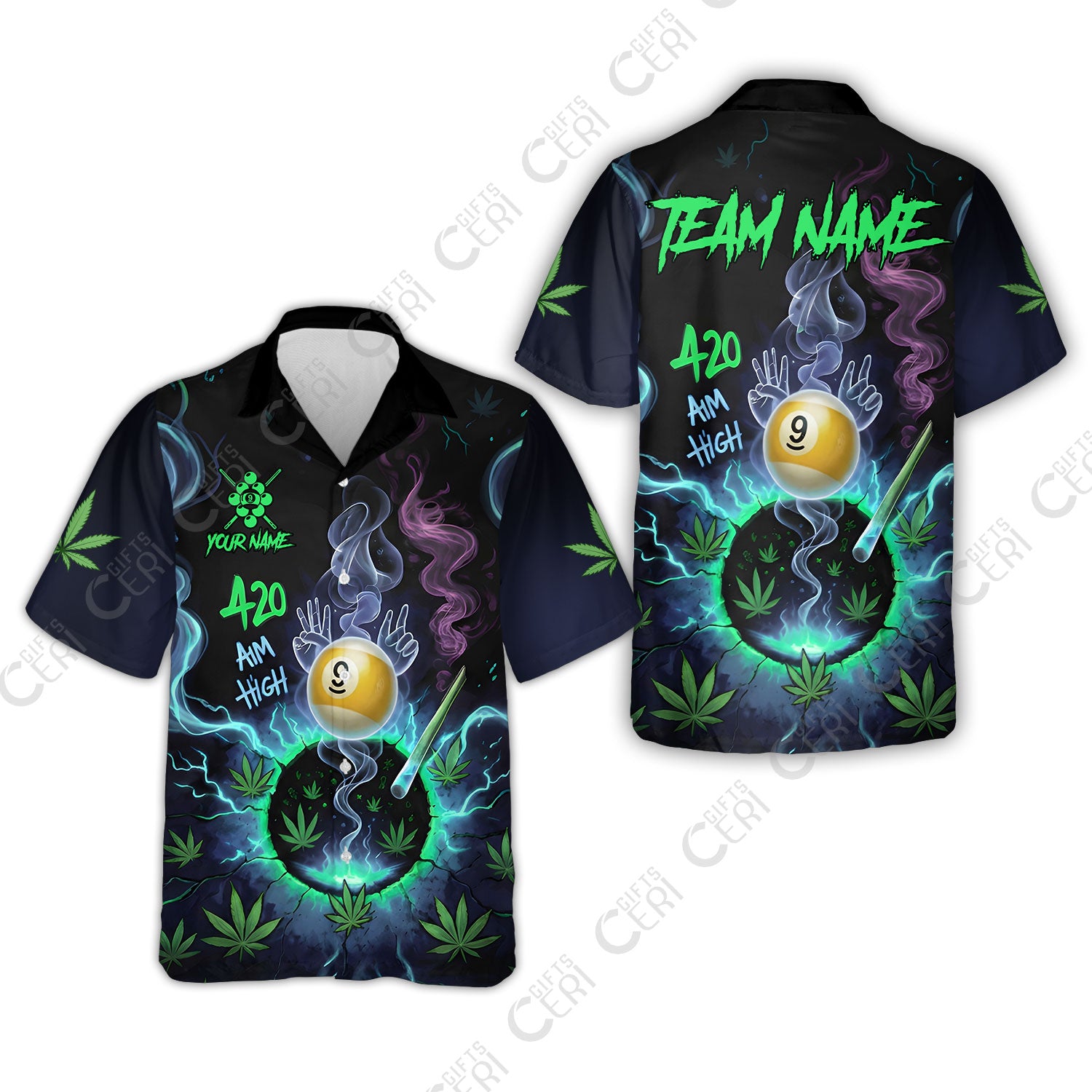 Customized Billiards Hawaiian Shirt, Personalized 420 Aim High 9 Ball Pool Team Jersey Gift For Billiard Players