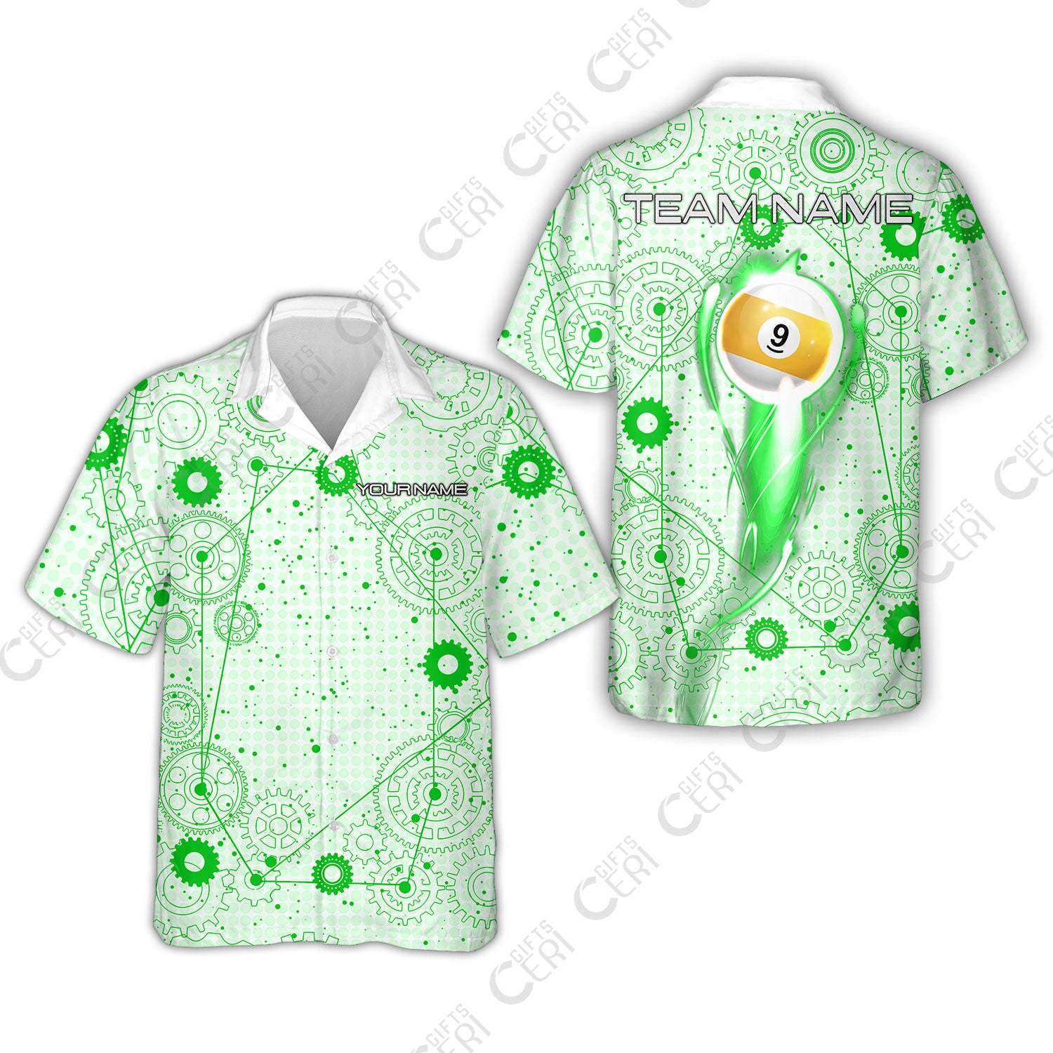 Customized Billiards Hawaiian Shirt, Personalized Billiard 9 Ball Lighting Gear Pattern Jersey Gift For Billiard Players