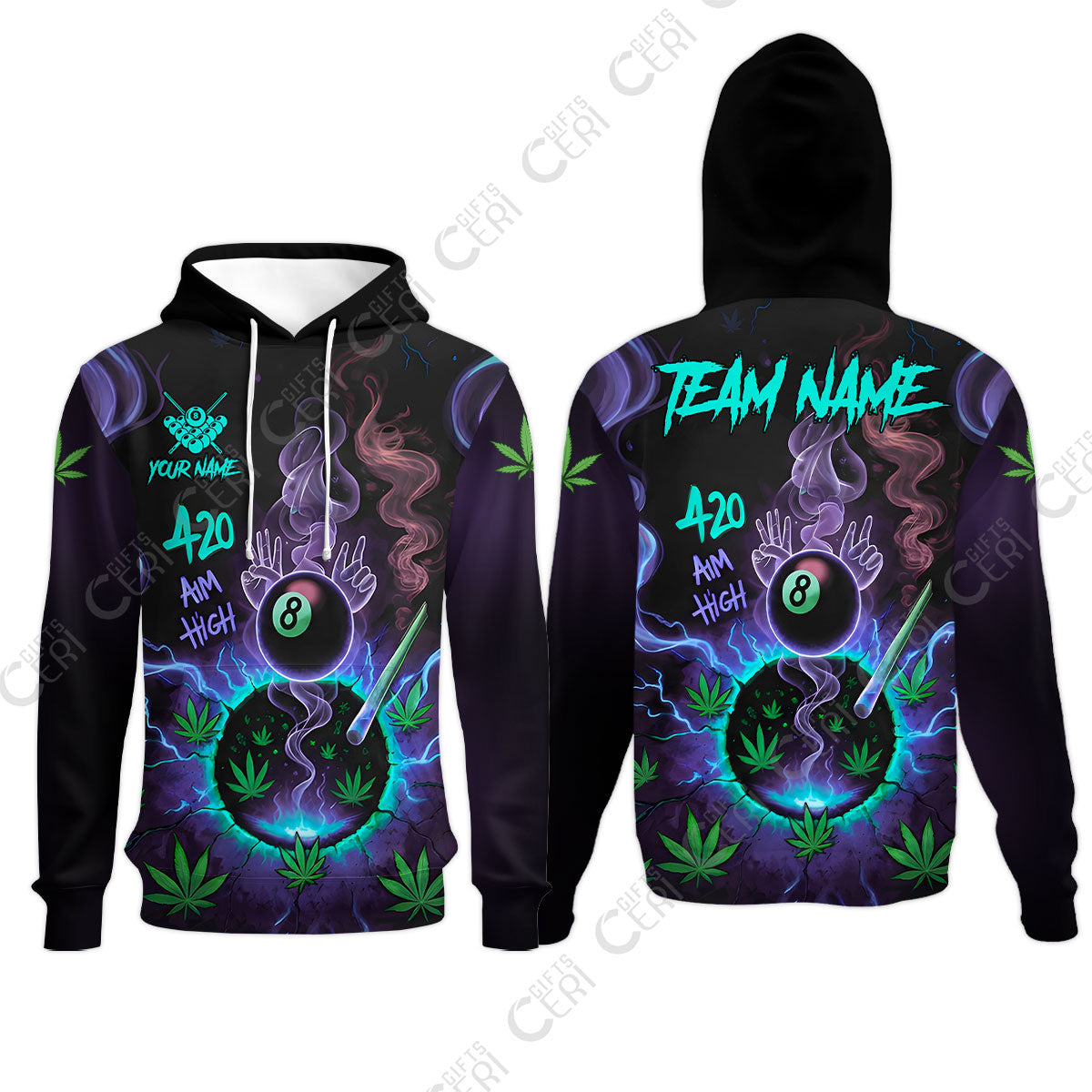 Customized Billiards Hoodies, Personalized 420 Aim High 8 Ball Pool Team Jersey Gift For Billiard Players