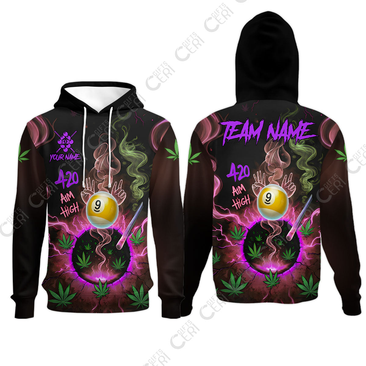 Customized Billiards Hoodies, Personalized 420 Aim High 9 Ball Pool Team Jersey Gift For Billiard Players