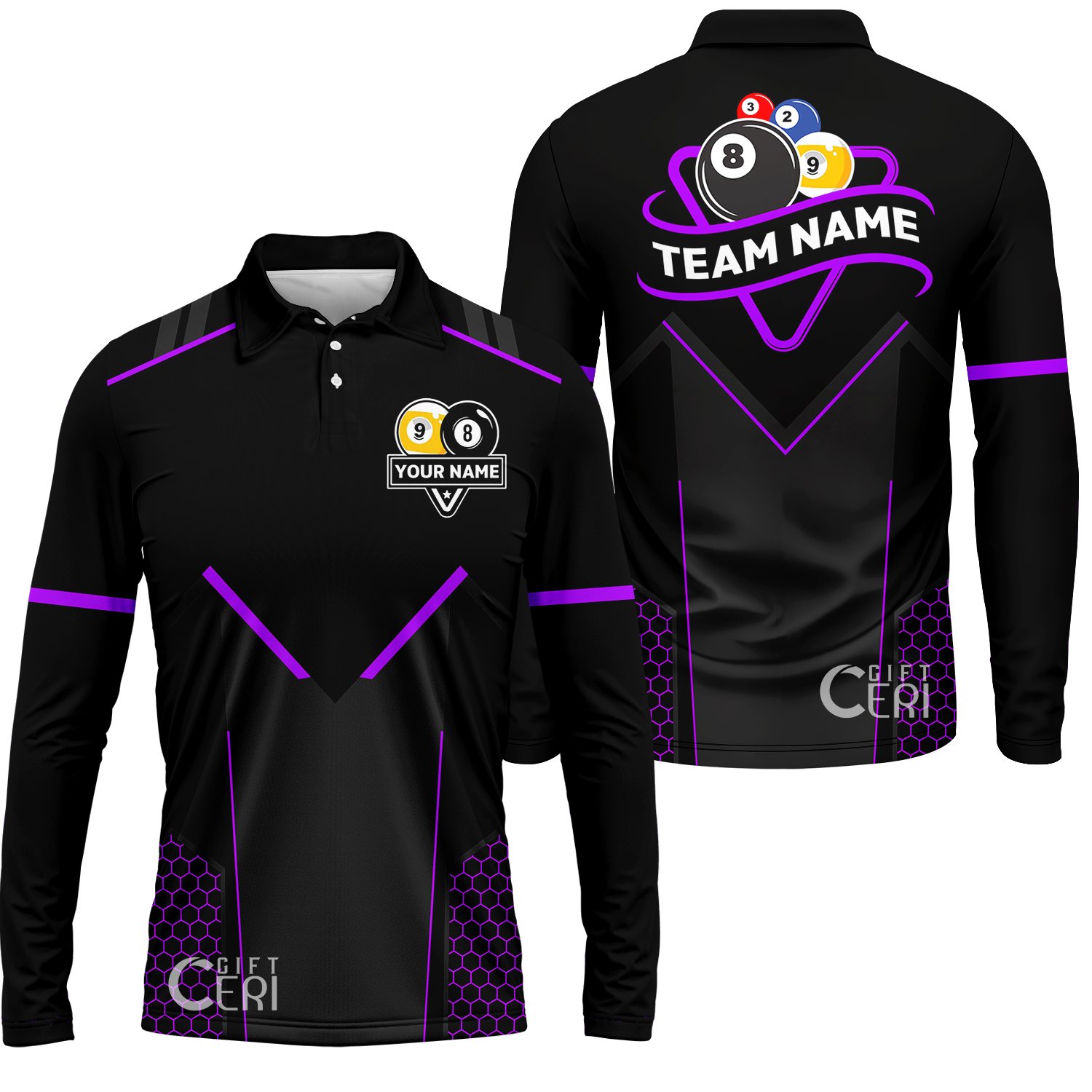 Customized Billiards Long Sleeve Polo Shirt, Billiards Esports 9 Ball 8 Ball Personalized Jersey Gift For Billiard Players