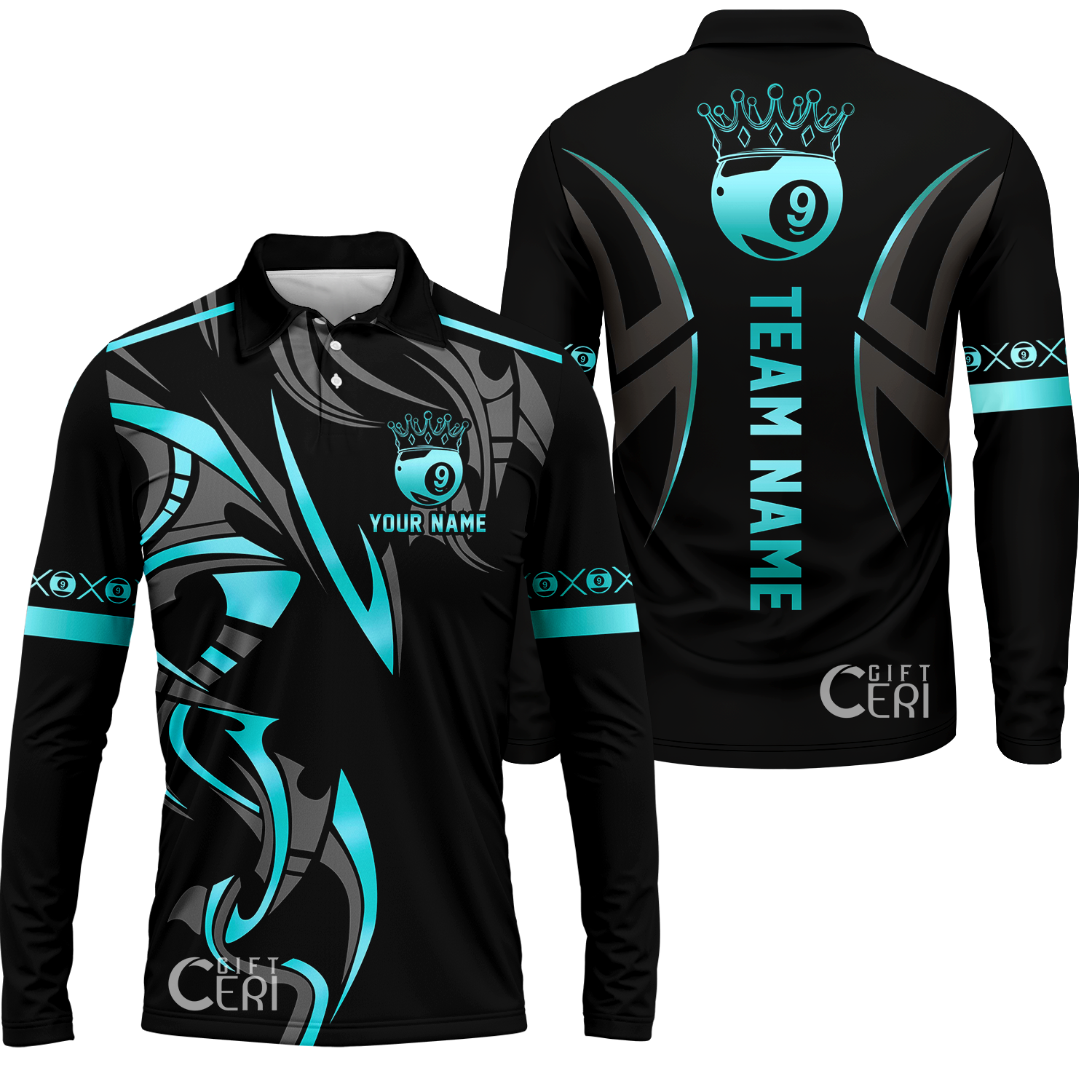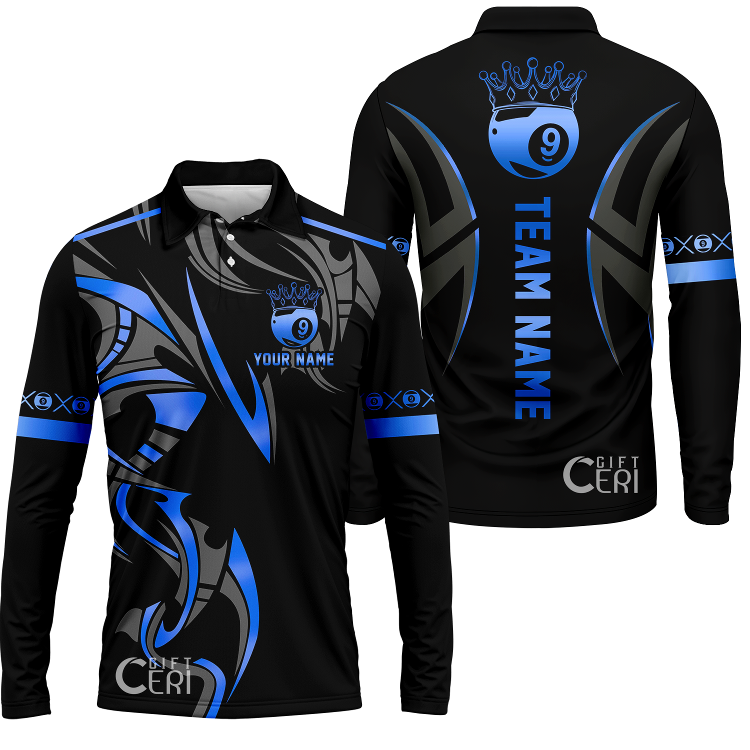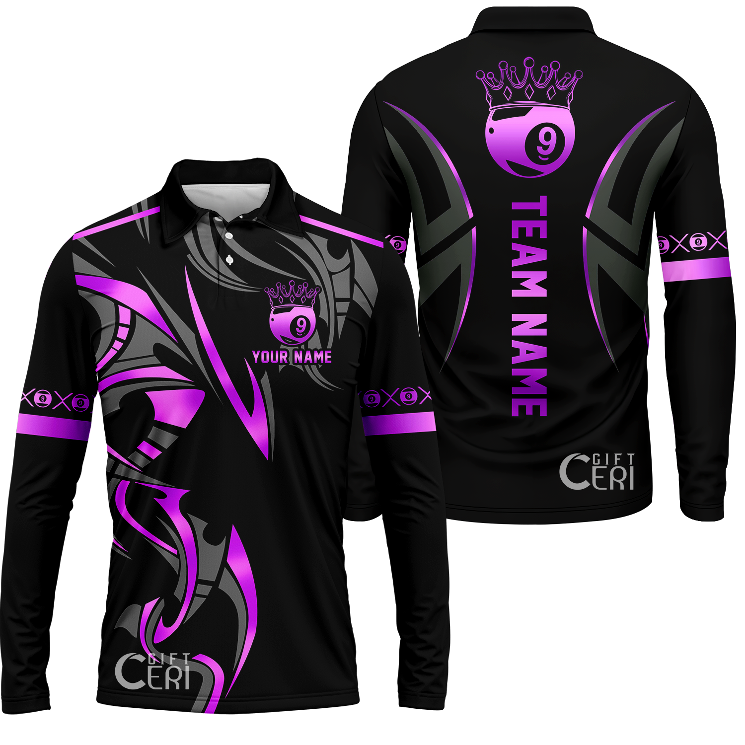 Customized Billiards Long Sleeve Polo Shirt, Crown 9 Ball Esport Jersey