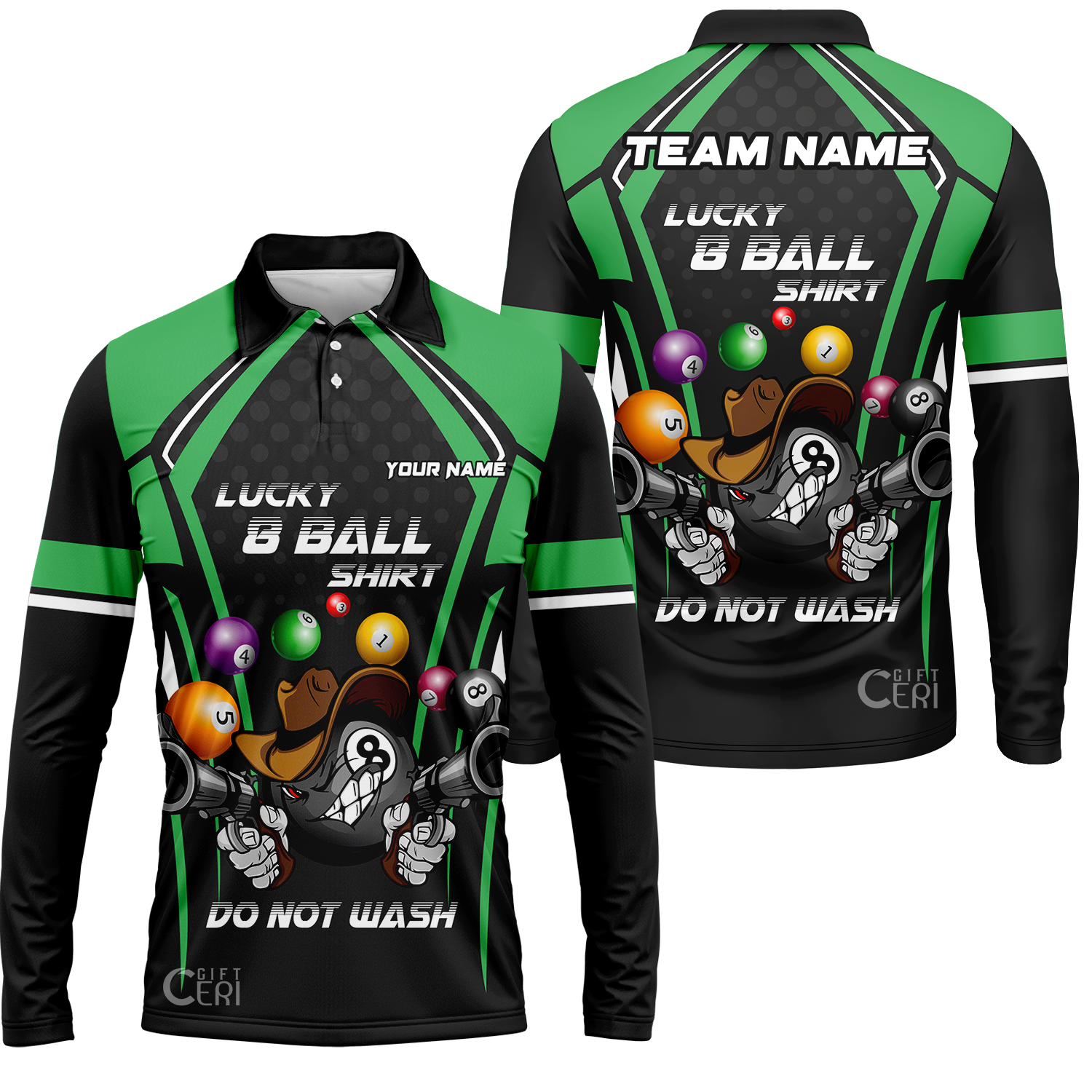 Customized Billiards Long Sleeve Polo Shirt, Personalized Lucky 8 Ball Shirt Do Not Wash Jersey Gift For Billiard Players