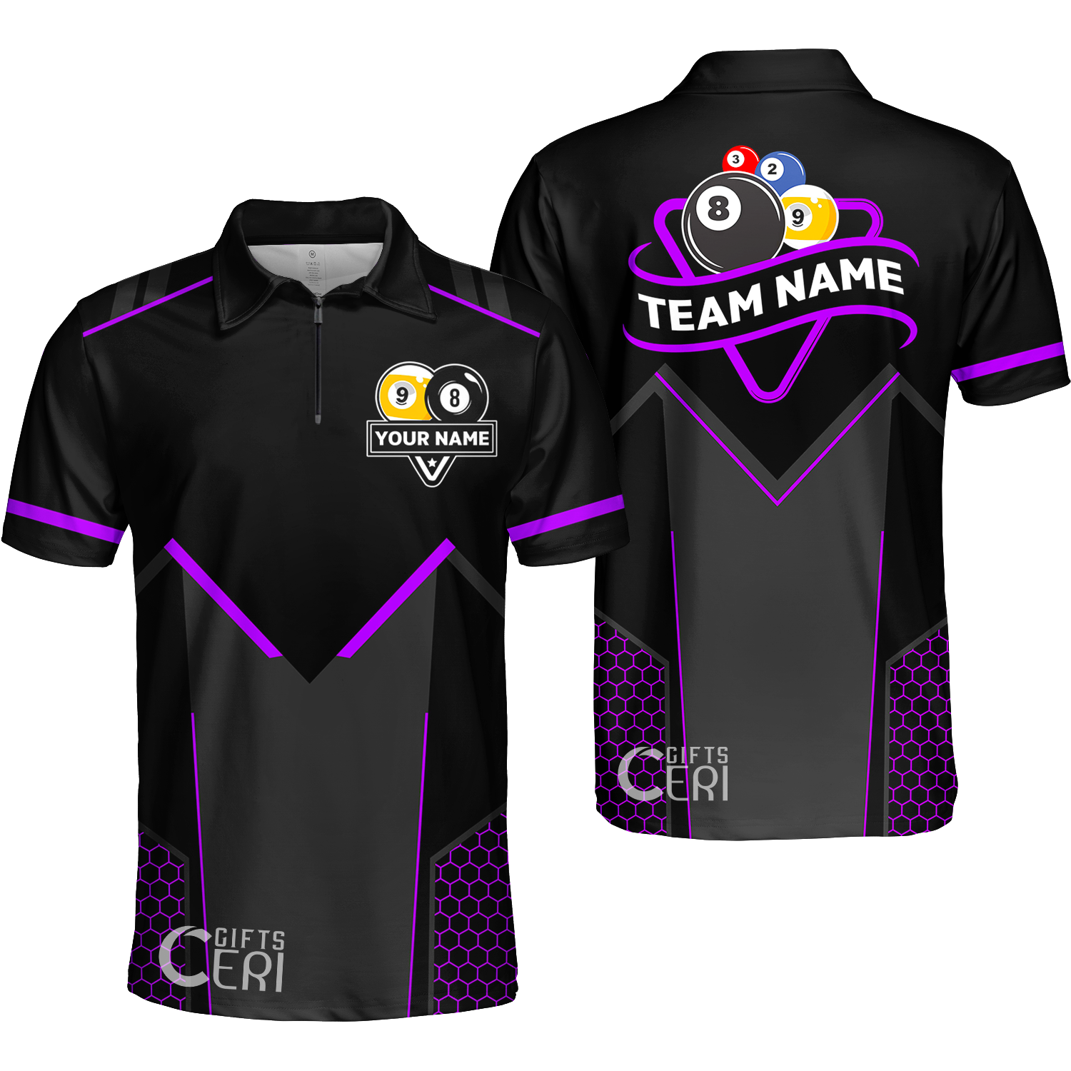 Customized Billiards Quarter-Zip Polo Shirt, Billiards Esports 9 Ball 8 Ball Personalized Jersey Gift For Billiard Players