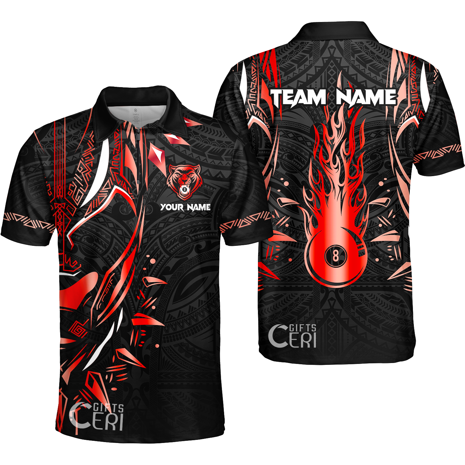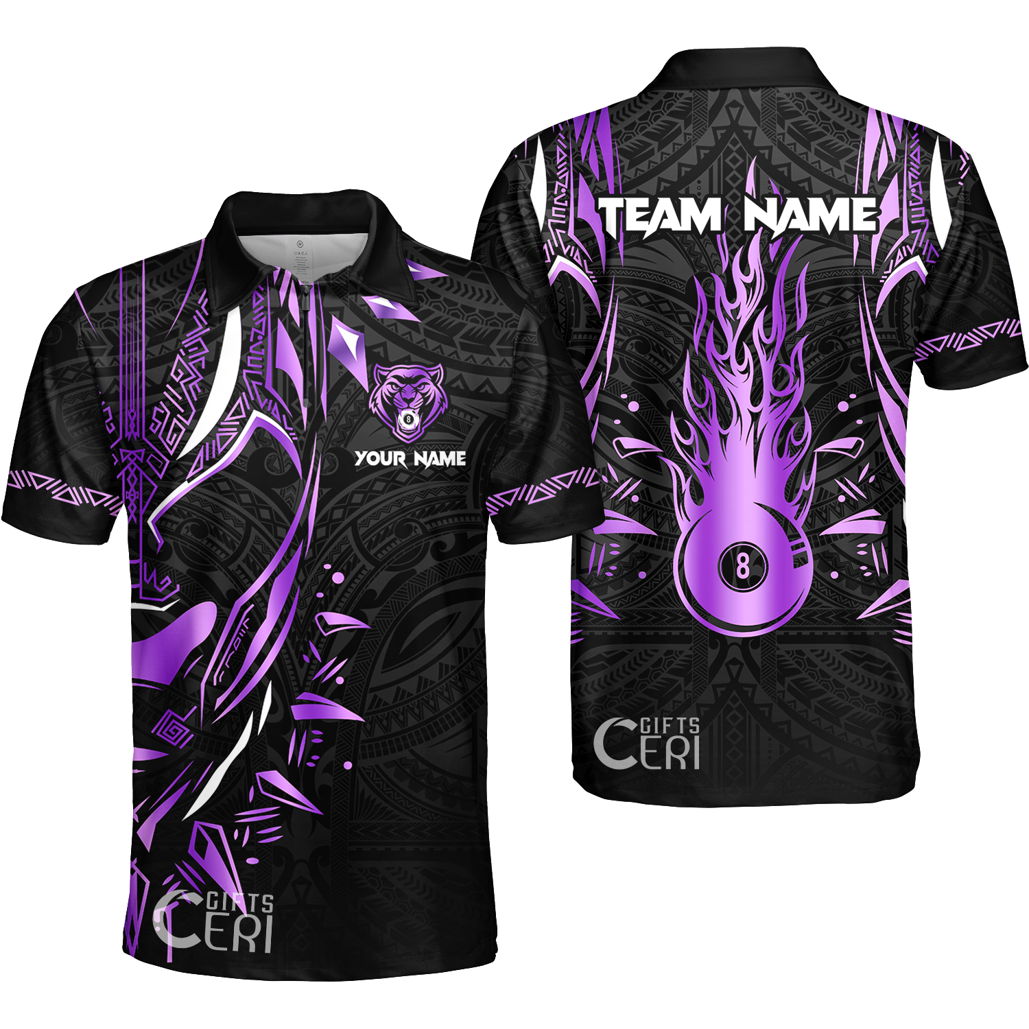 Customized Billiards Quarter-Zip Polo Shirt, Panther Forever Flaming 8 Ball Personalized Jersey Gift For Billiard Players